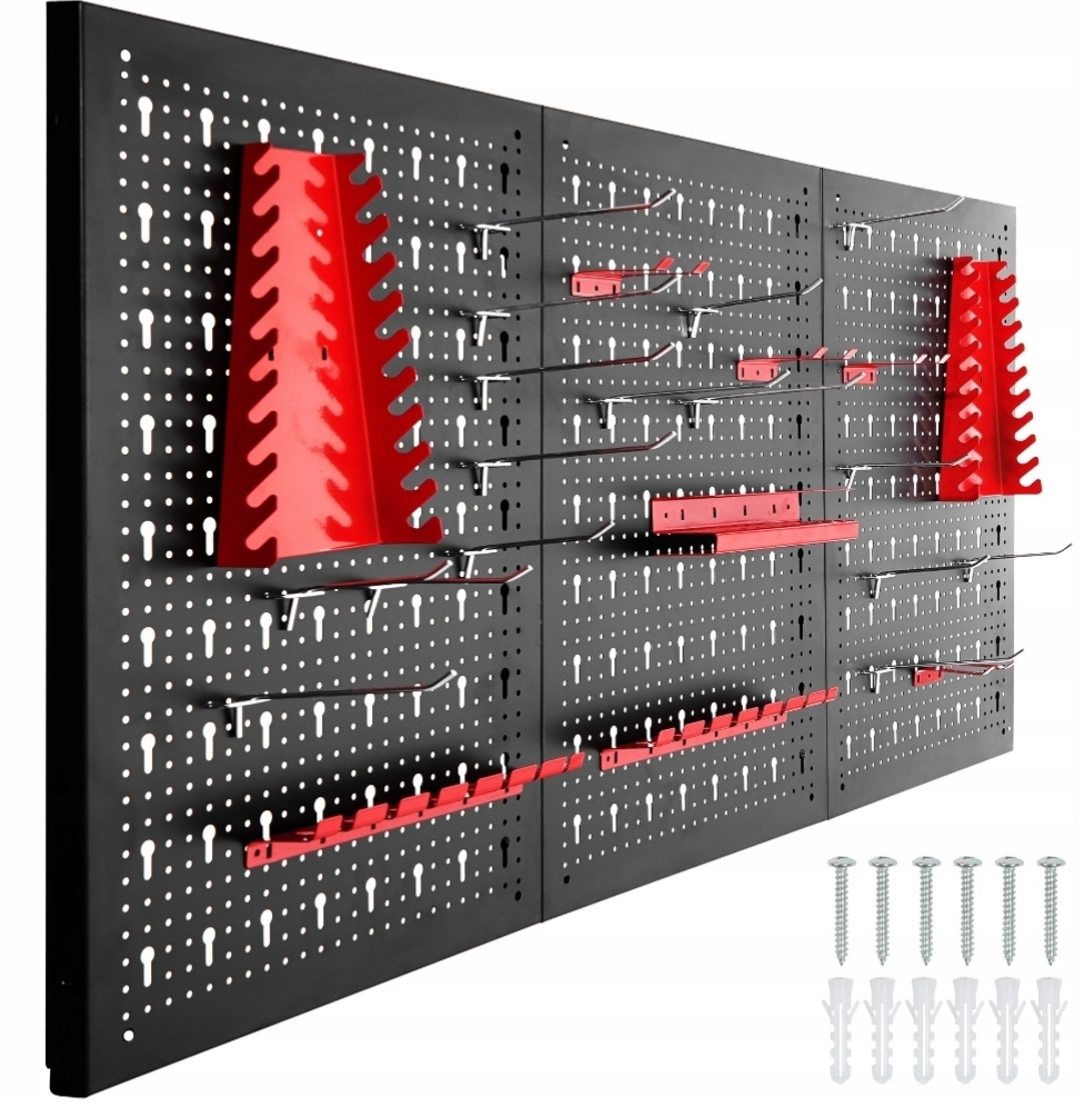 Trzyczęściowa ściana perforowana z 25 hakami i wspornikami