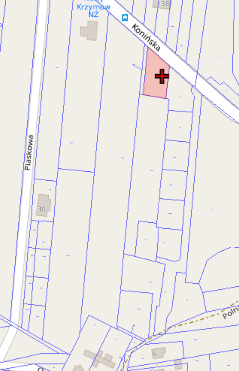 Blisko centrum Krzymowa, w sąsiedztwie zabudowy mieszkaniowej.