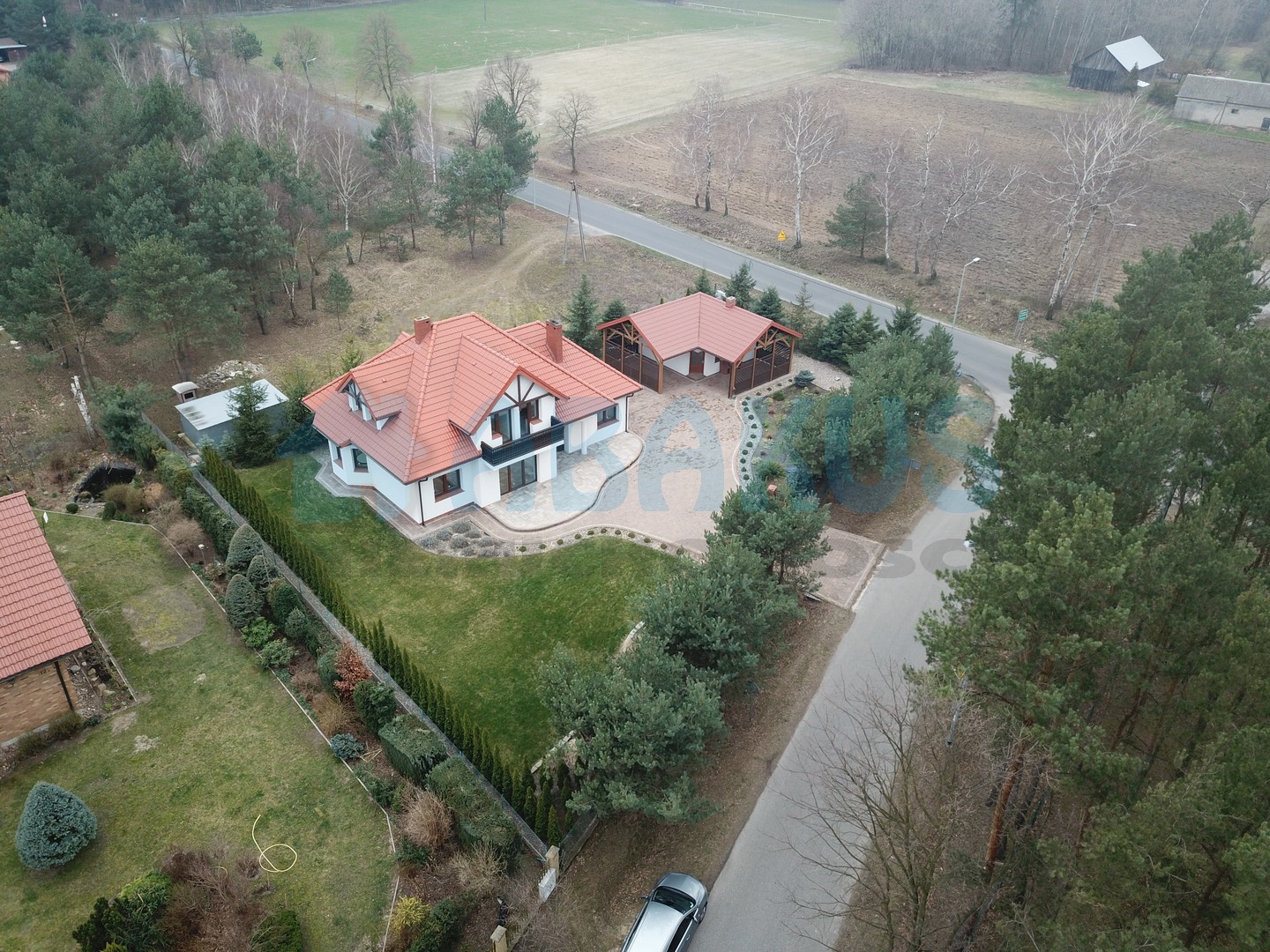 Budynek gospodarczy o pow. użytkowej ok. 30m2 z przyległą wiatą na samochód oraz altaną grillową.