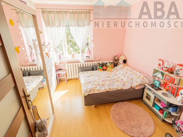 Budynek II piętrowy, podpiwniczony, pobudowany z wielkiej płyty . Do budynku podłączone są: woda, prąd, kanalizacja do sieci. Ogrzewanie na ekogroszek (wspólna kotłownia). Budynek wyposażony w domofon. Przed budynkiem miejsca parkingowe oraz miejsca do wypoczynku z dziećmi.Mieszkanie składa się z dwóch pokoi( 13,65m2, 11,28m2) kuchni (10,92m2), łazianki ( 4,57m2) oraz korytarza ( 9,40m2). Ekspozycja okien wschód, zachód. W pokojach na podłodze panele, pozostałe pomieszczenia terakota. W łazience wanna w zabudowie. Ściany glazura + emulsja. oraz boazeria PCV. Okna PCV