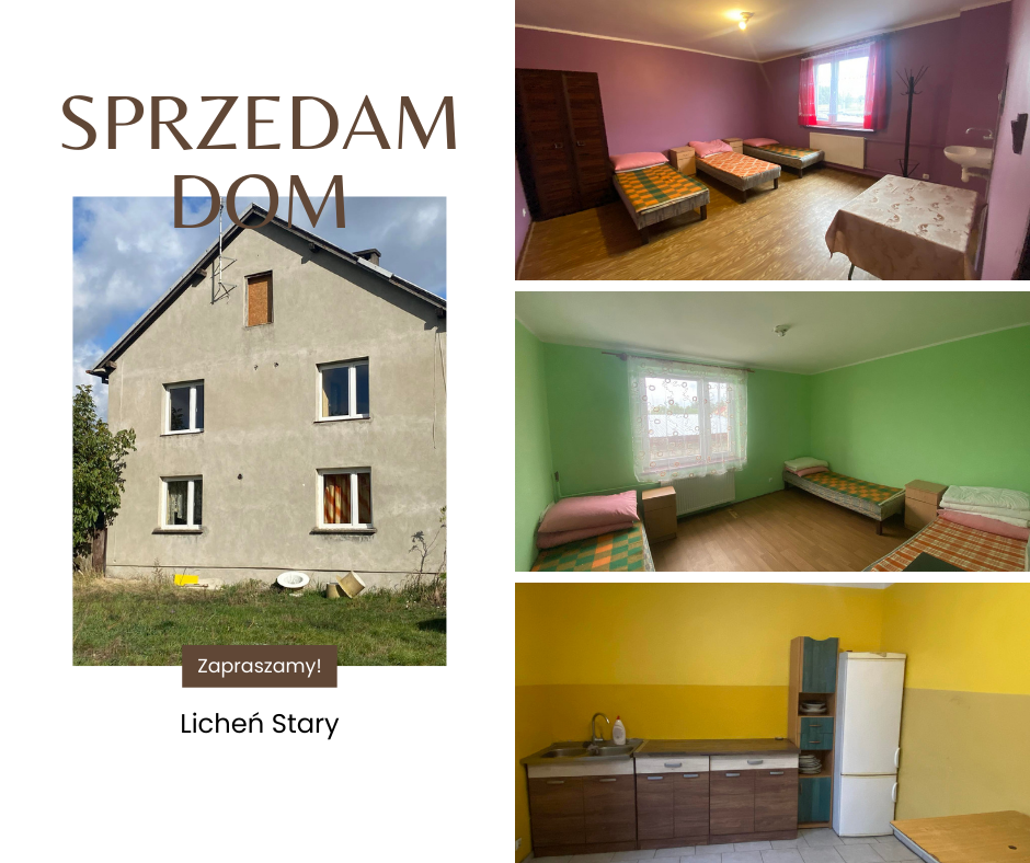 Sprzedam nieruchomość o łącznej powierzchni 965 m2 zlokalizowaną w pobliżu centrum Lichenia Starego. Działka gruntu zabudowana dwukondygnacyjnym budynkiem mieszkalnym o pow. zabudowy 125 m2. Nieruchomość idealnie nadaje się do zamieszkania dla dwóch rodzin lub pod inwestycję na wynajem krótko lub długoterminowy. Idealne położenie, nieruchomość zlokalizowana blisko centrum miejscowości w niedalekiej odległości sklepy, apteka, markety, przychodnia, szkoła, przedszkole, przystanek, jezioro, plaża miejska, pole kempingowe, lasy oraz tereny rekreacyjno-wypoczynkowe. Bardzo dobra komunikacja: Ślesina – 9 km, Konin – 14 km, Sompolno – 16 km, Kramsk – 11 km. Działka częściowo zagospodarowana i ogrodzona płotem betonowym. Budynek mieszkalny częściowo podpiwniczony, wysoki strych z możliwością adaptacji na kolejne mieszkania. Dom wolnostojący wybudowany w 1995 roku z cegły i pustaka z delatacją (styropian), na dachu blacha, stolarka okienna PCV. Wyszczególnienie pomieszczeń Parter: trzy pokoje, kuchnia, dwie łazienki, dwa osobne wc oraz korytarz. Piętro: cztery pokoje w tym jeden z łazienką i dwa z prysznicem, wc, dwa osobne prysznice oraz korytarz. Standard wykończenia: budynek do remontu, ściany pomalowane oraz płytki, na podłodze gumolit oraz terakota. Ogrzewanie: piec na ekogroszek. Media: woda, kanalizacja, prąd, światłowód. Dojazd do posesji drogą utwardzoną.