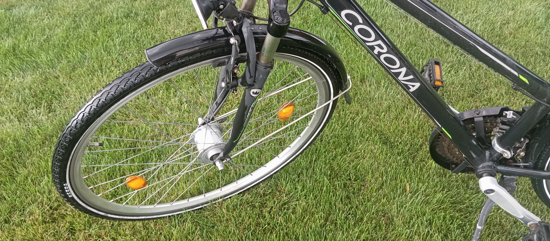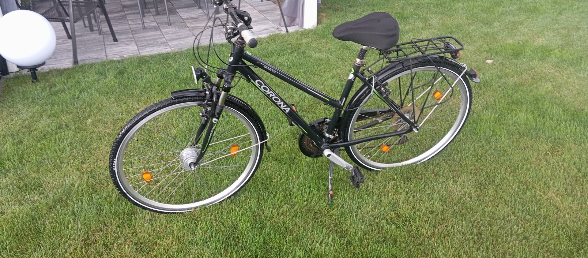 Niemiecki rower damski Corona, koła 28 calowe - szczelne, niemieckie opony Kenda w bdb stanie, biegi 3x7, amortyzowany widelec i siodełko co przekłada się na komfortową jazdę, oświetlenie z dynama w piaście przedniego koła.
