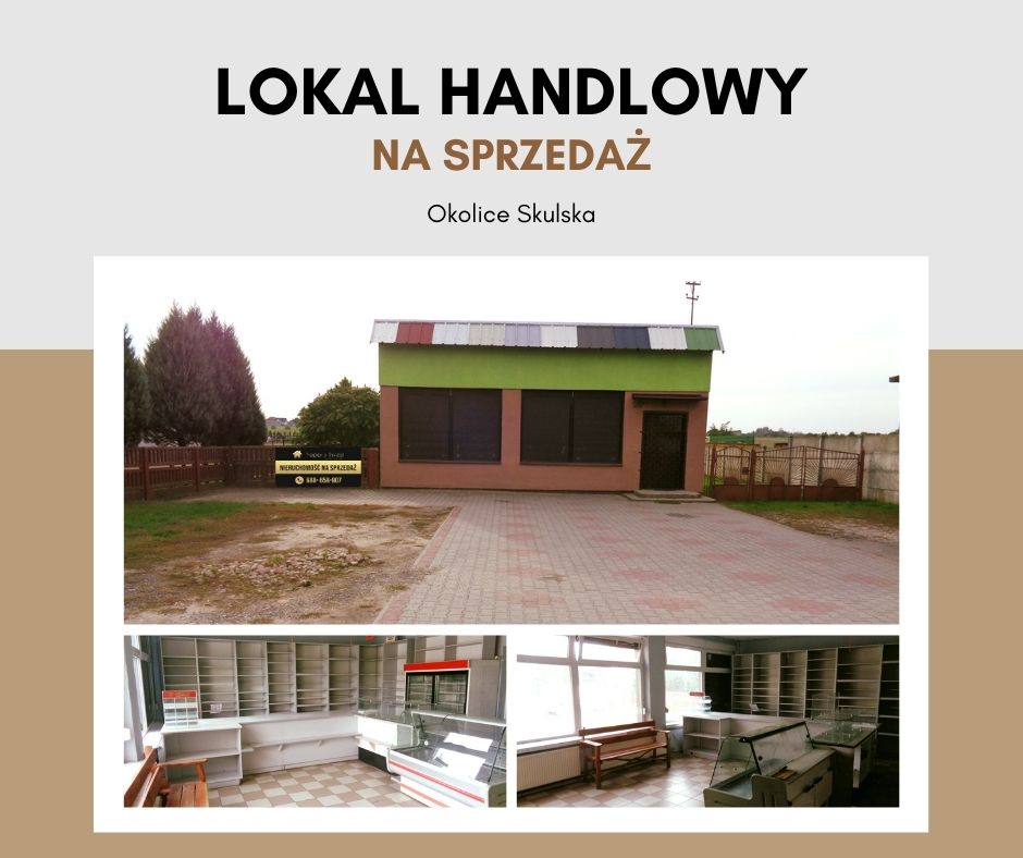 Sprzedam nieruchomość o powierzchni 1000 m2 zabudowaną parterowym budynkiem handlowo-usługowym o powierzchni 70 m2 zlokalizowaną w gminie Skulsk. Budynek wykorzystywany pod sklep spożywczo/przemysłowy. Obiekt znajduje się przy drodze krajowej nr 25, w sąsiedztwie zabudowy zagrodowej i jednorodzinnej. Dobra komunikacja: Skulsk - 2 km, Ślesin – 9 km, Konin – 26 km. Działka zagospodarowana (przed budynkiem duży i wykostkowany plac parkingowy z tyłu duży teren z możliwością zabudowy) i ogrodzona (ogrodzenie betonowe). Budynek parterowy wybudowany z cegły, strop ocieplony watą szklaną, na dachu blacha, okna PCV, rolety zewnętrzne, drzwi zewnętrzne metalowe. W skład budynku wchodzą: wiatrołap, sala sprzedażowa, magazyn z socjalem, łazienka z wc i kotłownia. Standard wykończednia: na podłogach płytki, ściany pomalowane oraz płytki, ogrzewanie: piec olejowy Ferroli, zbiornik 1500 m3. Obiekt z witrynami, miejscem na logo firmy na ścianie frontowej, niezależnym i osobnym wejściem, parkingami dla klientów i obsługi oraz bezpośrednim dostępem do drogi krajowej. Istnieje możliwość adaptacji budynku pod działalność usługową lub handlową o innym profilu działalności. Dostęp do wszystkich mediów: prąd, woda, kanalizacja na działce oraz światłowód w drodze.