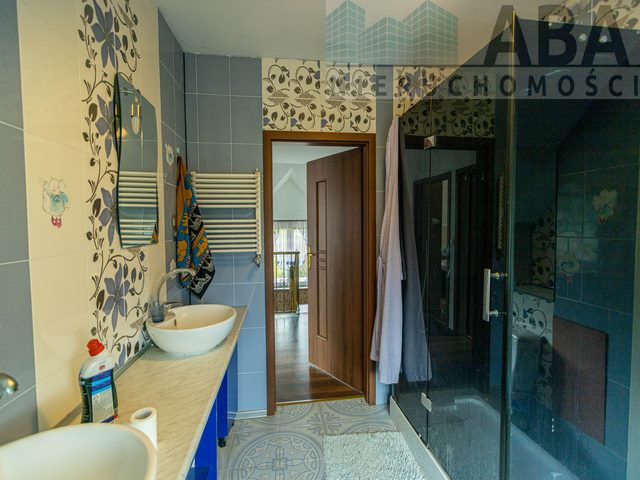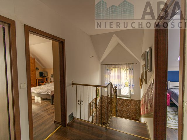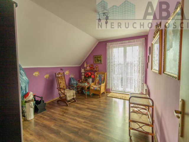 Dom mieszkalny jednorodzinny piętrowy w zabudowie wolnostojącej, niepodpiwniczony pobudowany został w technologii tradycyjnej, murowanej+ocieplenie styropianem grafit 20 cm+ tynk mineralny) w 2009 r. Dach skośny pokryty blachodachówką, ogrzewanie piec uniwersalny. Na parterze mieszczą sie: wiatrołap, łazienka z prysznicem i wanną, kuchnia, salon z wyściem na zabudowany, przestronnytaras, korytarz, pokój, kotłownia. Na poddaszu znajdują się 4 pokoje oraz łazienka z prysznicem i wanną. Działka uzbrojona w następujące instalacje: energia elektryczna, woda, kanalizacja do szamba. Dojazd do nieruchomości drogą asfaltową, ok. 50m drogą polną. Działka zagospodarowana: nasadzenia drzew i krzewów, jest również wydzielona część na ogród warzywny.