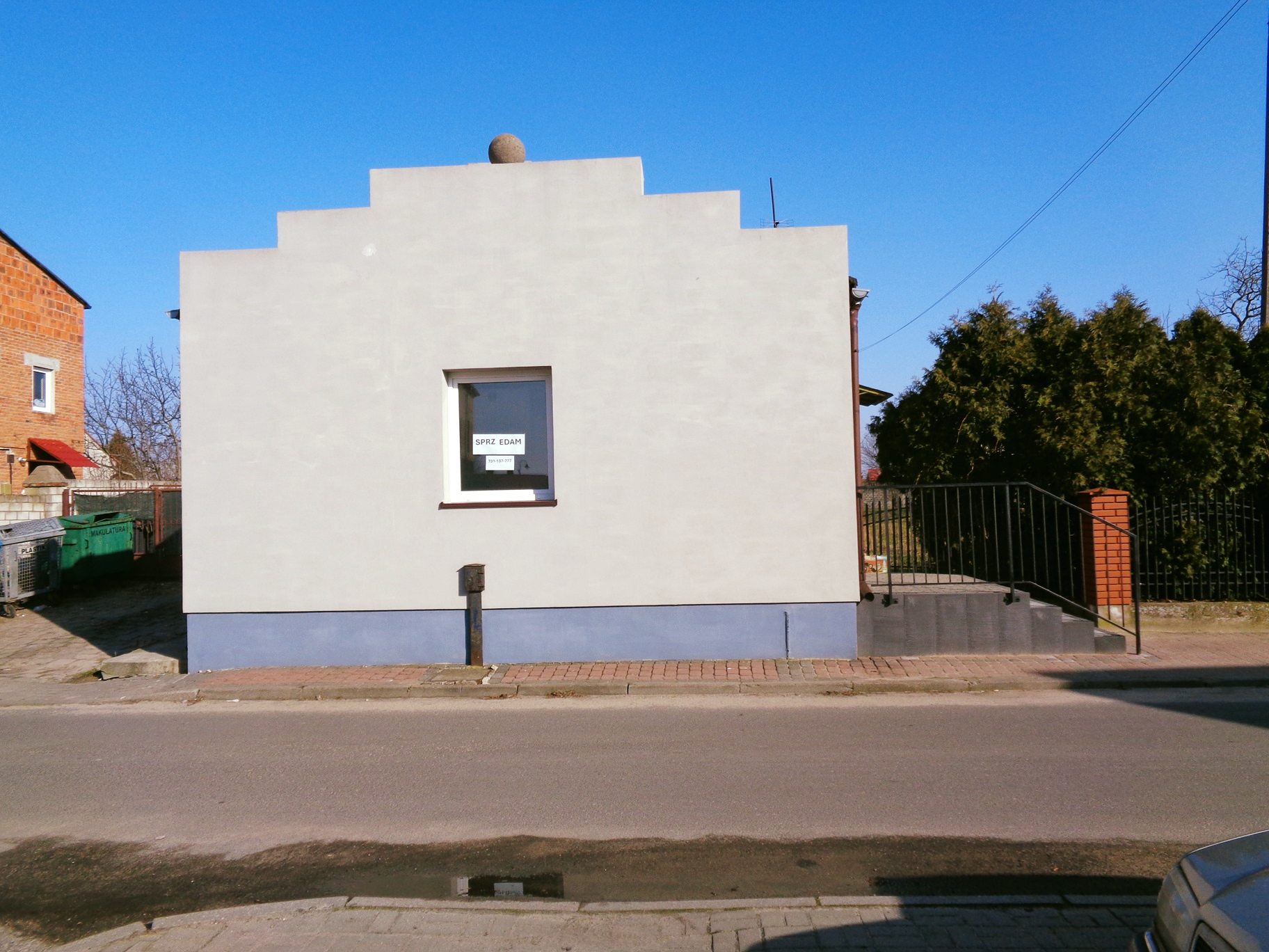 Sprzedam parterowy budynek w cenie mieszkania w centrum Sompolna. Odrębna własność nieruchomości lokalowej o pow. użytkowej około 35 m2 oraz udział w prawie użytkowania wieczystego działki gruntu. Nieruchomość po remoncie, do zamieszkania lub idealnie nadająca się na prowadzenie działalności gospodarczej (biuro, gabinet). Działka częściowo zagospodarowana i ogrodzona o powierzchni 571 m2. Budynek z niezależnym wejściem od ulicy. Idealna lokalizacja, nieruchomość zlokalizowana w samym centrum miasta w niedalekiej odległości sklepy, apteka, markety, przychodnia, szkoła, przedszkole, dom kultury, rynek, przystanek, urząd oraz inne obiekty użyteczności publicznej. Wyszczególnienie pomieszczeń: wiatrołap, pokój, umeblowana kuchnia, korytarz oraz łazienka z wc i prysznicem. Standard wykończenia: Na podłogach terakota i panele, ściany malowane, gipsowane oraz panele. Budynek murowany, okna PCV, klimatyzacja. Media: woda, kanalizacja, prąd oraz sieć telekomunikacyjna. Dojazd do posesji drogą asfaltową.
