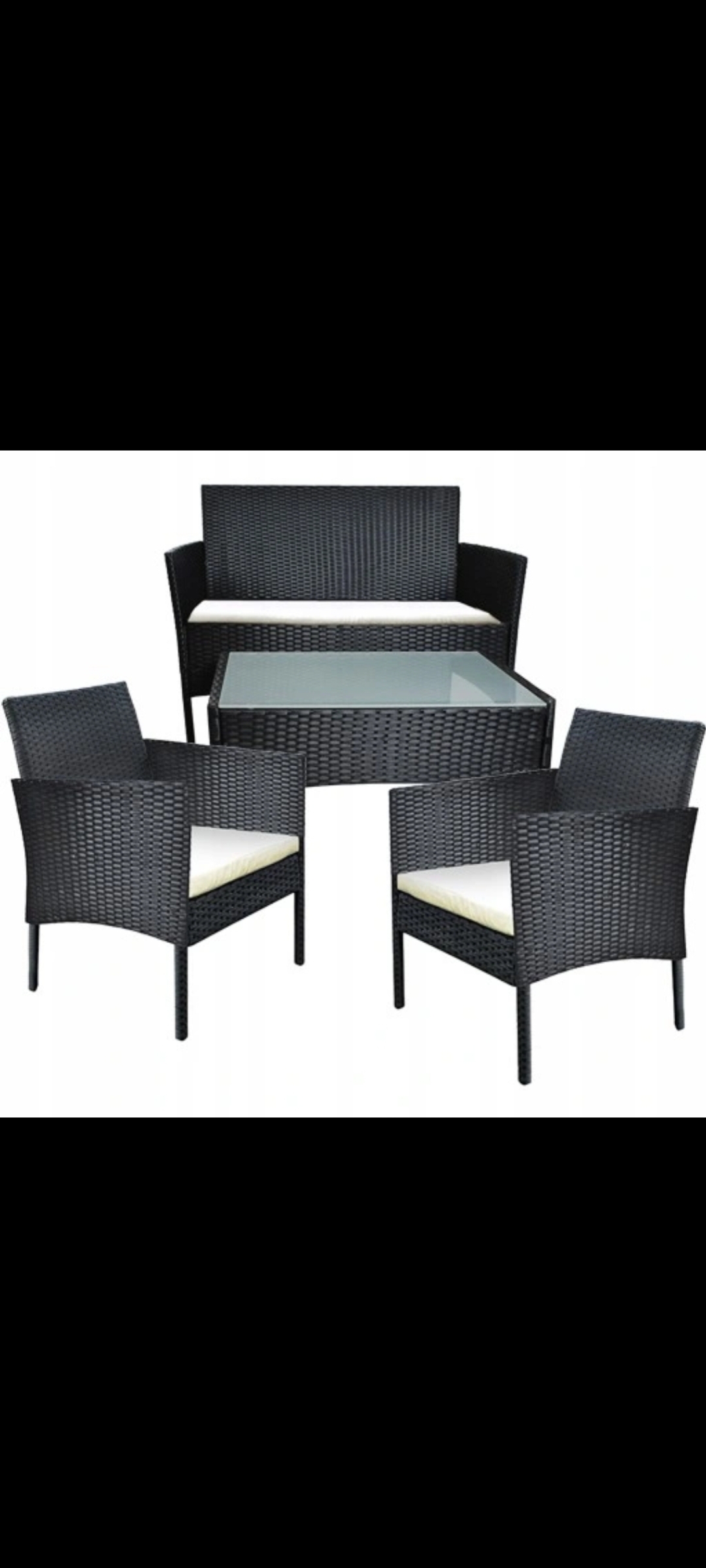 Dzięki klasycznemu stylowi i wysokiej jakości materiałom nasze zestawy mebli ogrodowych są trwałe. Malowana proszkowo stal i odporna na blaknięcie wiklina PE zapewniają solidność i trwałość temu zestawowi mebli ogrodowych.Miękko wyściełane fotele oraz sofa zapewniają maksymalny komfort i doskonałe wrażenia podczas siedzenia. Jeśli poduszki przypadkowo się zabrudzą, możesz po prostu odpiąć poszewkę i wyprać poszewki.Ten zestaw rattanowych mebli można ustawić na tarasie, ogrodzie, balkonie lub przy basenie.Meble są lekkie, dzięki temu można je z łatwością przenosić z miejsca na miejsce. Krzesła oraz sofa są stabilne poprzez odpowiednio dopracowaną konstrukcję.Fotele i sofaWygodne, wykonane z technorattanu z miękkimi poduszkami - lekkie, stabilne i bardzo komfortowe :)zestawie:3 poduszki w kolorze ecru, grubość 5 cm (wszystkie posiadają zdejmowane pokrowce, wykonane są z wodoodpornego materiału)2 foteleSofaStółNiezbędne elementy do montażuSpecyfikacja stołu:długość: 71 cmszerokość: 41 cmwysokość: 39 cmPraktyczny 4-osobowy stół do ogrodu lub tarasBlat wykonany ze szkła hartowanegoMetalowe profileDane techniczne:szerokość fotela: 56 cmgłębokość fotela : 50cmwysokość fotela: 81 cmWymiary siedziska fotela: 46 cm x 43 cmMaksymalna wytrzymałość: 120 kgŁatwo zmywalny i przewiewny materiał siedziska i oparcia krzesłaWymiary siedziska sofy: 93 cm x 43 cmszerokość sofy: 99 cmgłębokość sofy: 50 cmwysokość sofy: 81 cm