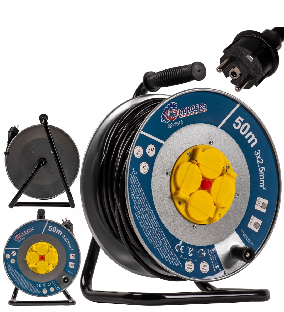 DANE TECHNICZNE:Długość przewodu: 50mPrzekrój przewodu: 3 x 2,5mmIlość gniazd: 4 z klapkamiUziemienie: takWłącznik/wyłącznik: takStopień ochrony: IP20Rączka do przenoszeniaNapięcie: 230 VOsłona kabla: naturalna PVC H05VV-F, odporna na uszkodzenia mechaniczne, czynniki atmosferyczne i substancję chemiczne ( oleje, benzynę i alkohole)Max. obciążenie (zwinięty): 700 WMax. obciążenie (rozwinięty): 2950 WWaga: 3,9 kgIdealny na budowy, do domu i ogroduPrzedłużacz to przedłużacz o solidnym wykonaniu. Stelaż metalowy. Urządzenie ma zastosowanie przy domowych pracach, w garażach, warsztatach, halach itp.Cechy produktu:Wysoka jakość wykonaniaProdukt certyfikowany. Posiada deklarację zgodności, co świadczy o jakości produktu4 gniazd50m przewoduMiedziana instalacja
