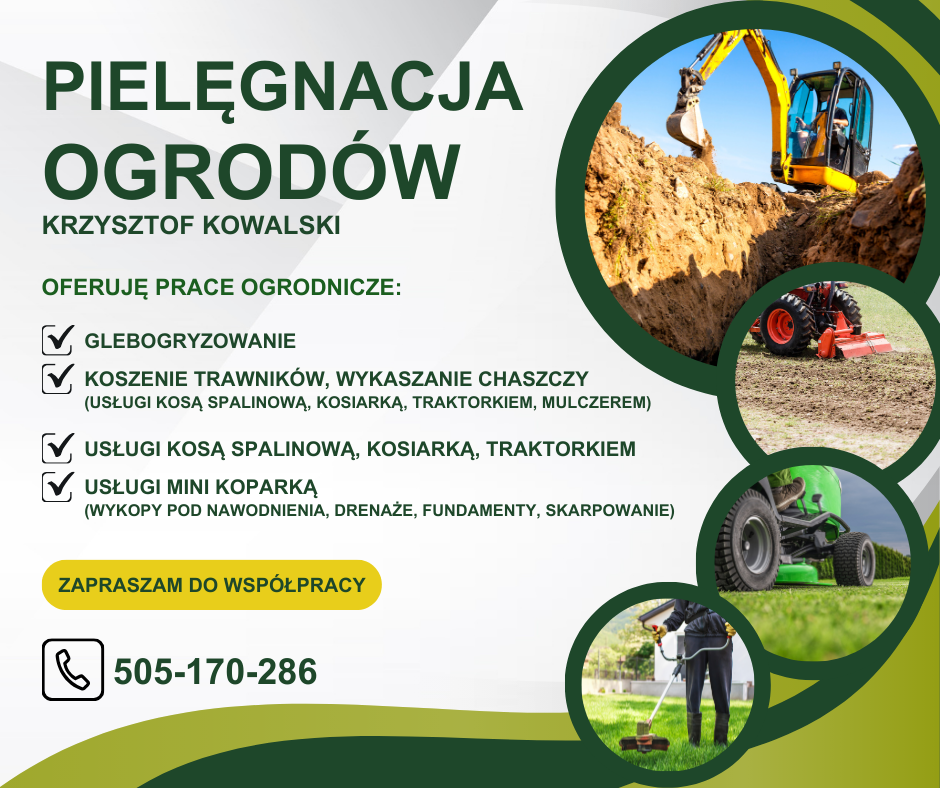 - Oferuje pomoc w ogrodzie, usługi