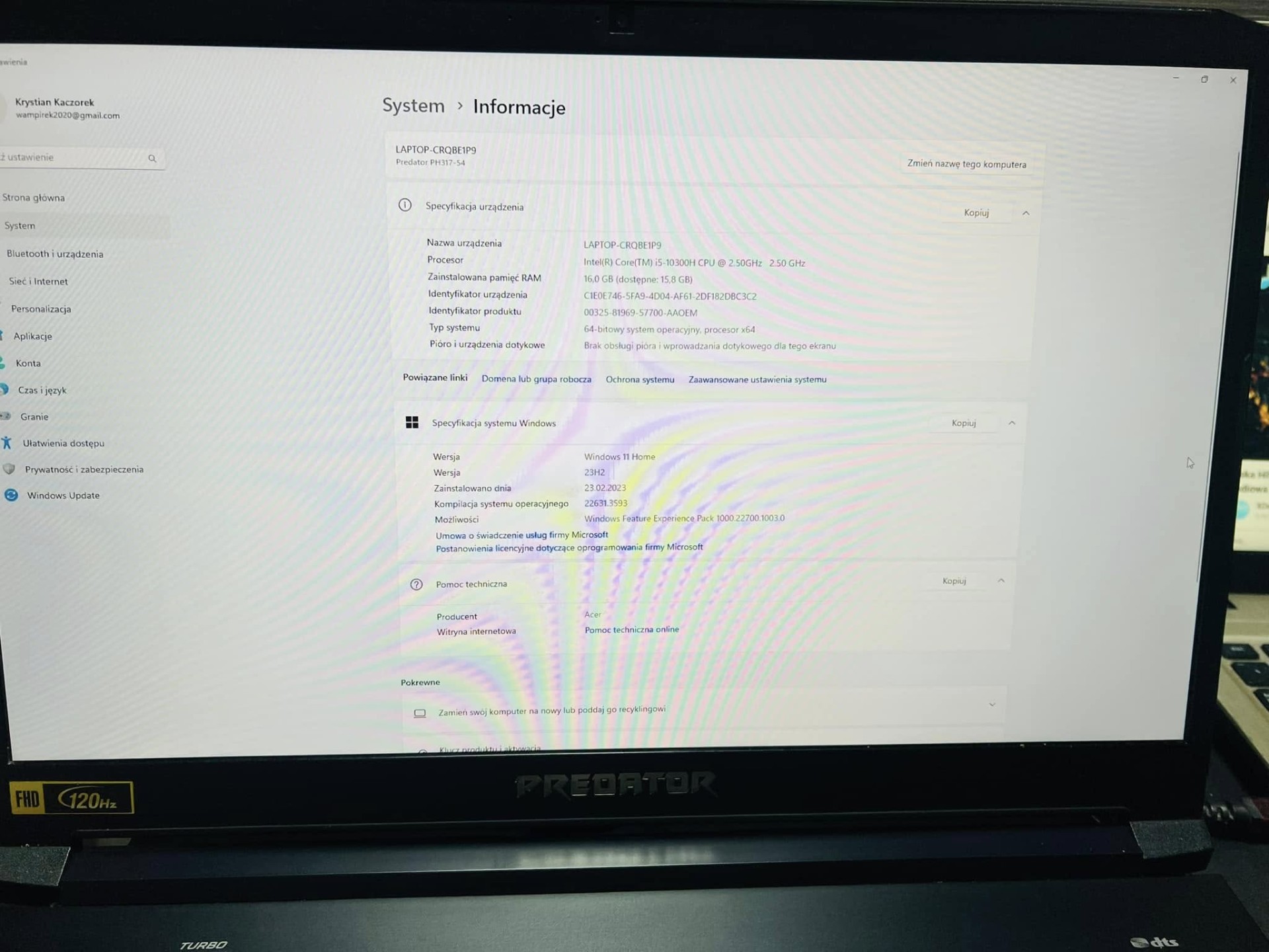 Laptop Acer helios 300 N18I3 16/512 GB