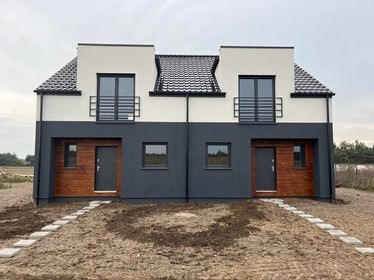 Sprzedam jednorodzinne domy w zabudowie bliźniaczej w stanie deweloperskim w Skulsku. Nowoczesne domy parterowe z poddaszem użytkowym zlokalizowane w malowniczej, cichej i spokojnej okolicy na monitorowanym i chronionym osiedlu domków jednorodzinnych. Idealna lokalizacja: w niedalekiej odległości jezioro, lasy, stadion, tereny rekreacyjno-wypoczynkowe a jednocześnie w pobliżu centrum Skulska. Bardzo dobra komunikacja, do Konina - 30 km, Ślesin – 14 km, Strzelno – 22 km, Kruszwica – 24 km. W najbliższej okolicy: szkoła, przedszkole, markety, sklepy, przychodnia, apteka, poczta, bank, urząd. Domy z balkonem o powierzchni użytkowej 103 m2 zlokalizowane na działkach o powierzchni 8,52 ara. Wyszczególnienie pomieszczeń: Parter: duży, jasny i przestronny salon z aneksem kuchennym, gabinet, łazienka, korytarz, wiatrołap, kotłownia, klatka schodowa. Piętro: trzy sypialnie, łazienka, klatka schodowa. Budynek parterowy z poddaszem użytkowym murowany z betonu komórkowego 24 cm, ocieplony styropianem 20 cm i pokryte tynkiem silikatowym. Strop ocieplony wełną mineralną, na dachu dachówka ceramiczna czarny połysk, okna PCV pakiet trzyszybowy, rolety zewnętrzne elektryczne, drzwi wejściowe stalowe, tynki cementowo-wapienne. Ogrzewanie podłogowe oraz dodatkowo grzejniki w łazienkach, źródło ciepła: instalacja przygotowana pod pompę ciepła (dodatkowo istnieje możliwość przystosowania kotłowni pod ogrzewanie gazowe, ekogroszek lub pellet). Dom wyposażony w instalację: wod-kan, elektryczną, internetową i telewizyjną. Działka ogrodzona z trzech stron siatką panelową 123 cm, wyposażona w eko szambo, kostka brukowa: miejsce postojowe, wejście do domu. Media: prąd, woda. Dojazd do posesji drogą utwardzoną. Podana cena brutto, kupujący nie ponosi kosztów podatku PCC.