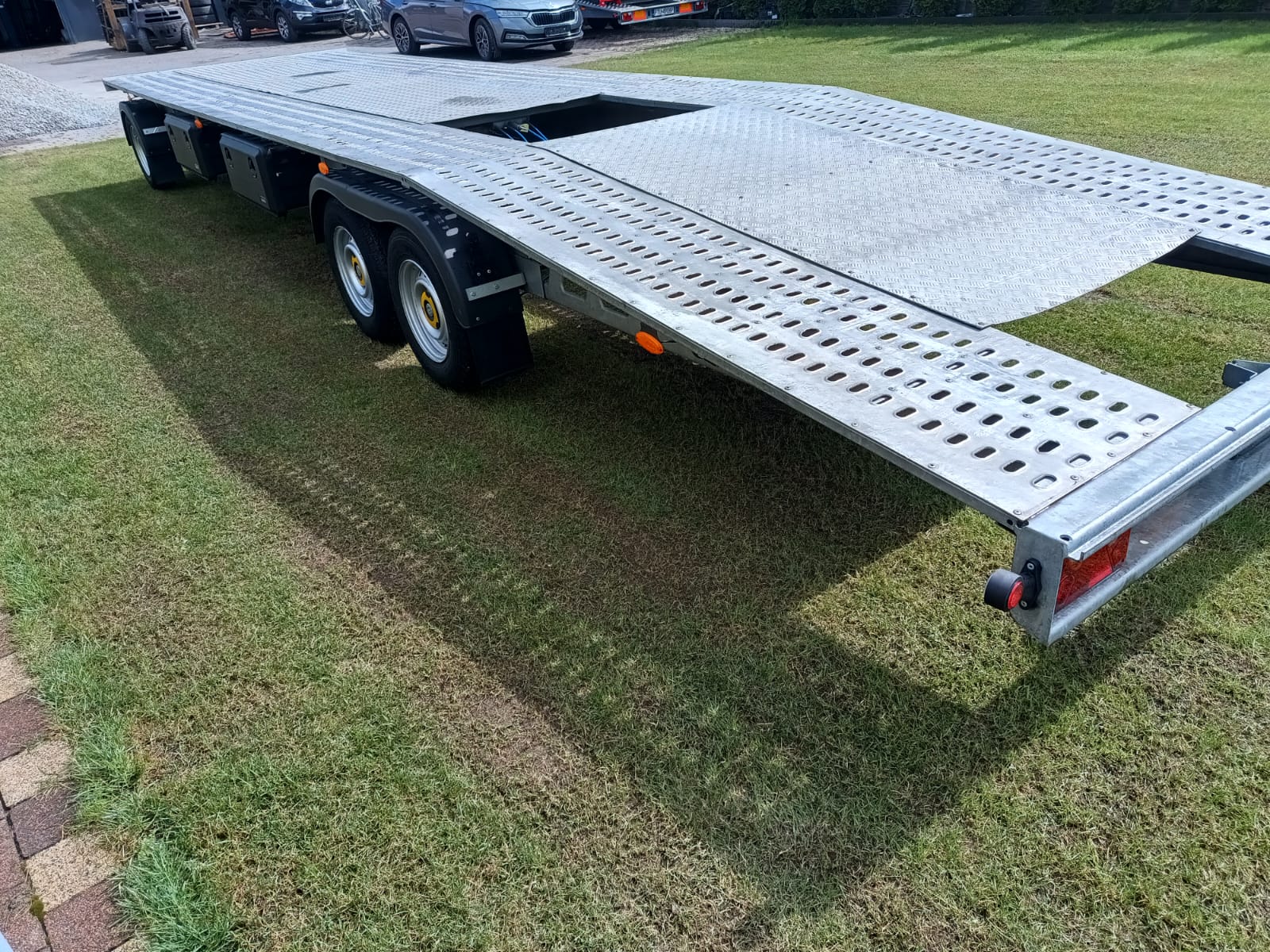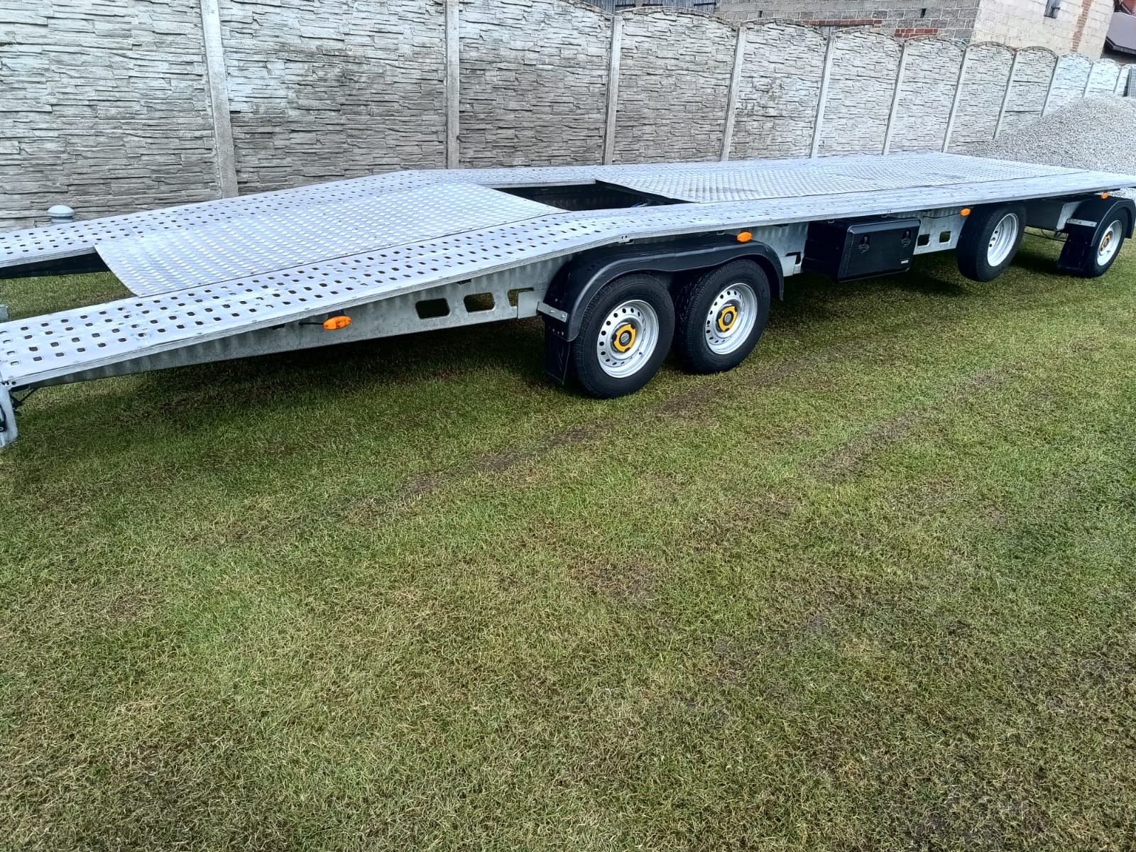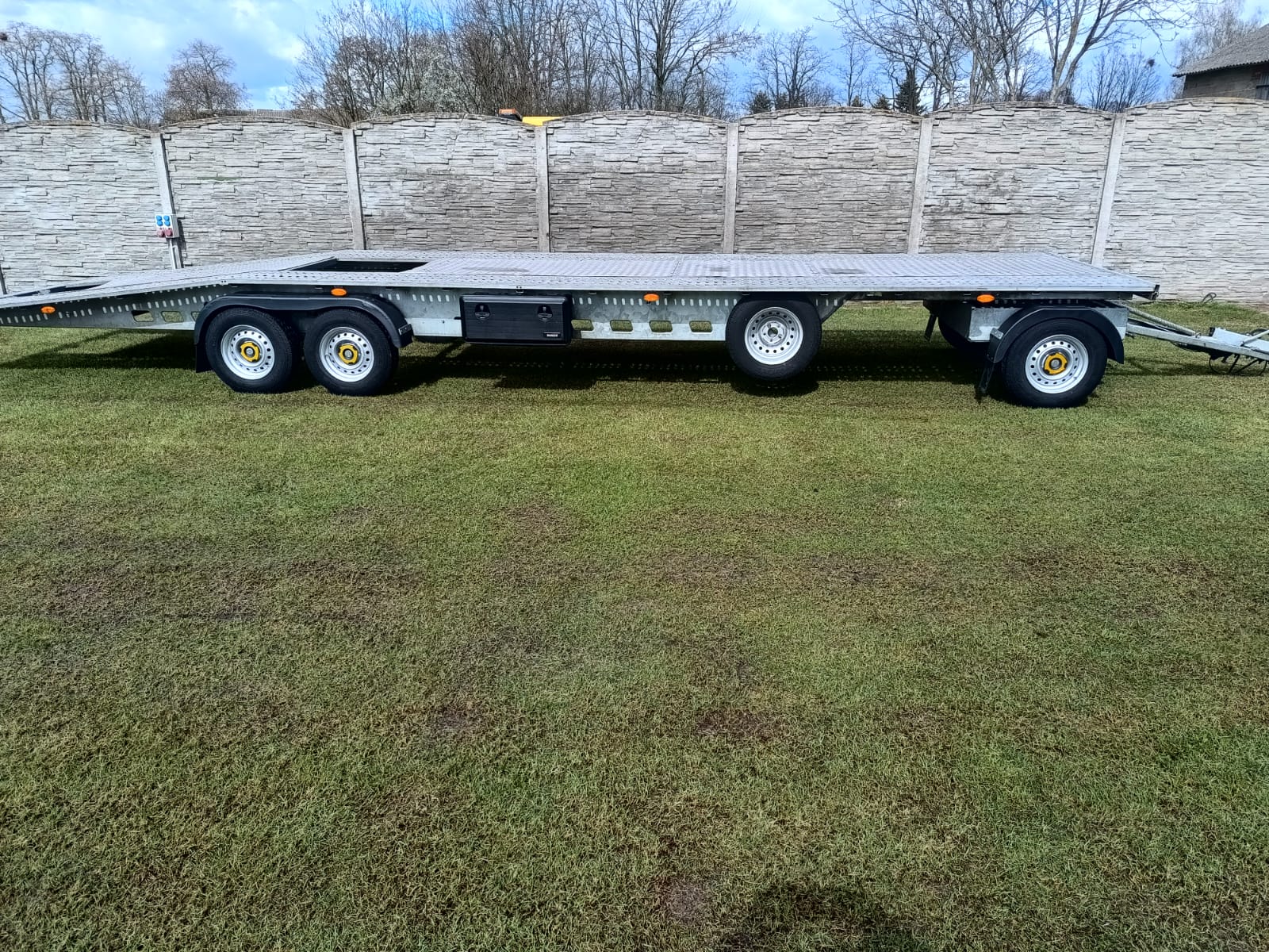 Sprzedam lawetę obrotnicę firmy ,, WEEKEND '' , rok produkcji 12. 2023 , pierwsza rejestracja styczeń 2024, 1 właścieiel , ładowność 2280 kg , laweta użytkowana do swoich potrzeb , naprawy na bieżąco , osie 1500 kg ALKO , przegląd 01.2027 , OC 01.2026 , kupujący zwolniony z opłaty skarbowej , cena 37 900 zł, tel. 530 709 673