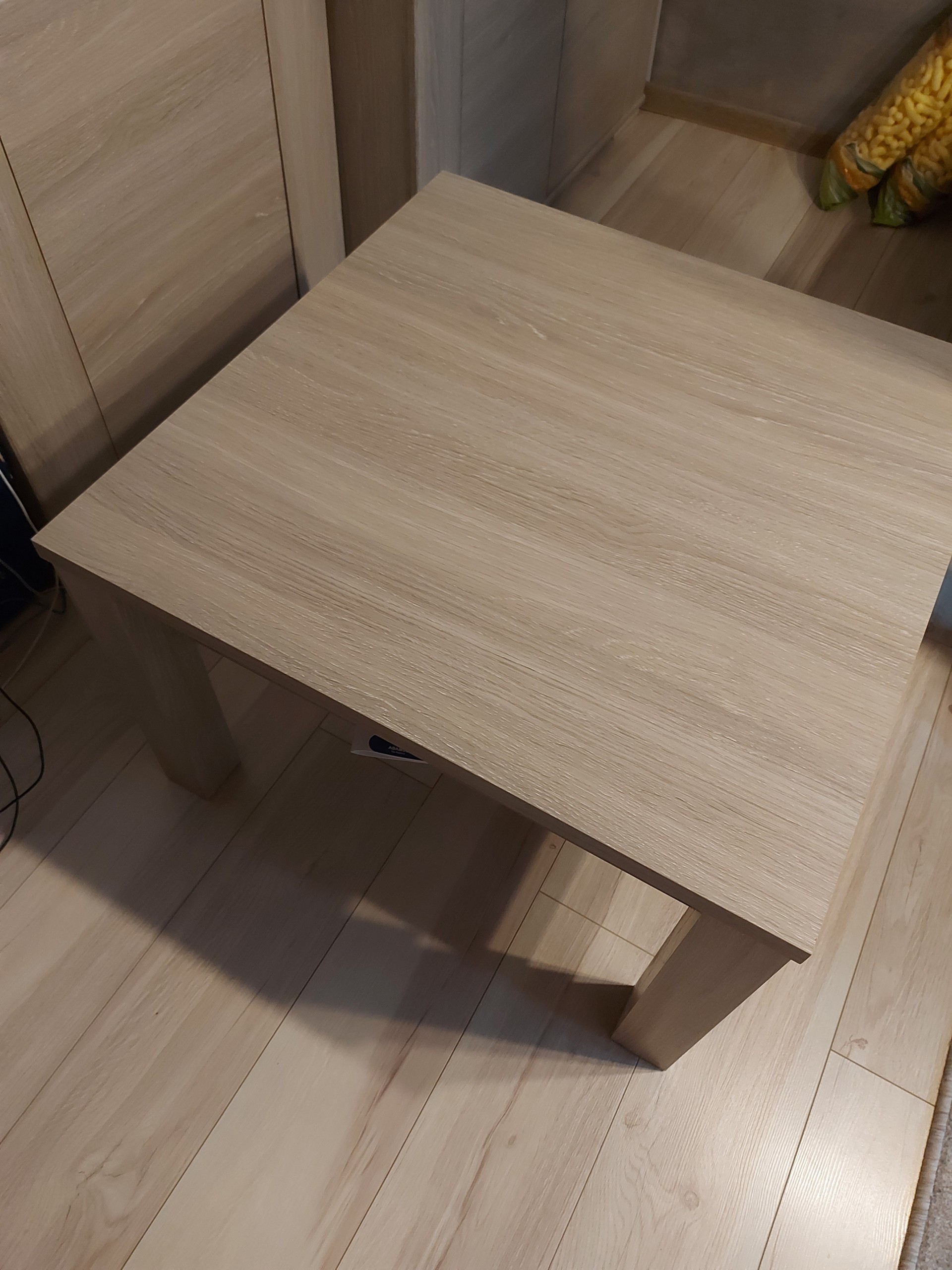 Witam stolik jak na zdjęciach, 75/75 wysokość 50 cm, wizualnie niezniszczony, solidny, jedynie jak widać na zdjęciu z jednej nogi odpadło trochę okleiny, nie rzuca się to tak w oczy jak stoi. Odbiór osobisty w Koninie nie wysyłam. Cena jak najbardziej do negocjacji, polecam.