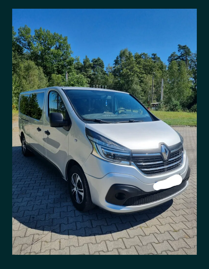 Oferujemy do wynajęcia Renault Trafic z 2019 roku w wersji 9-osobowej – idealne rozwiązanie dla większych grup.