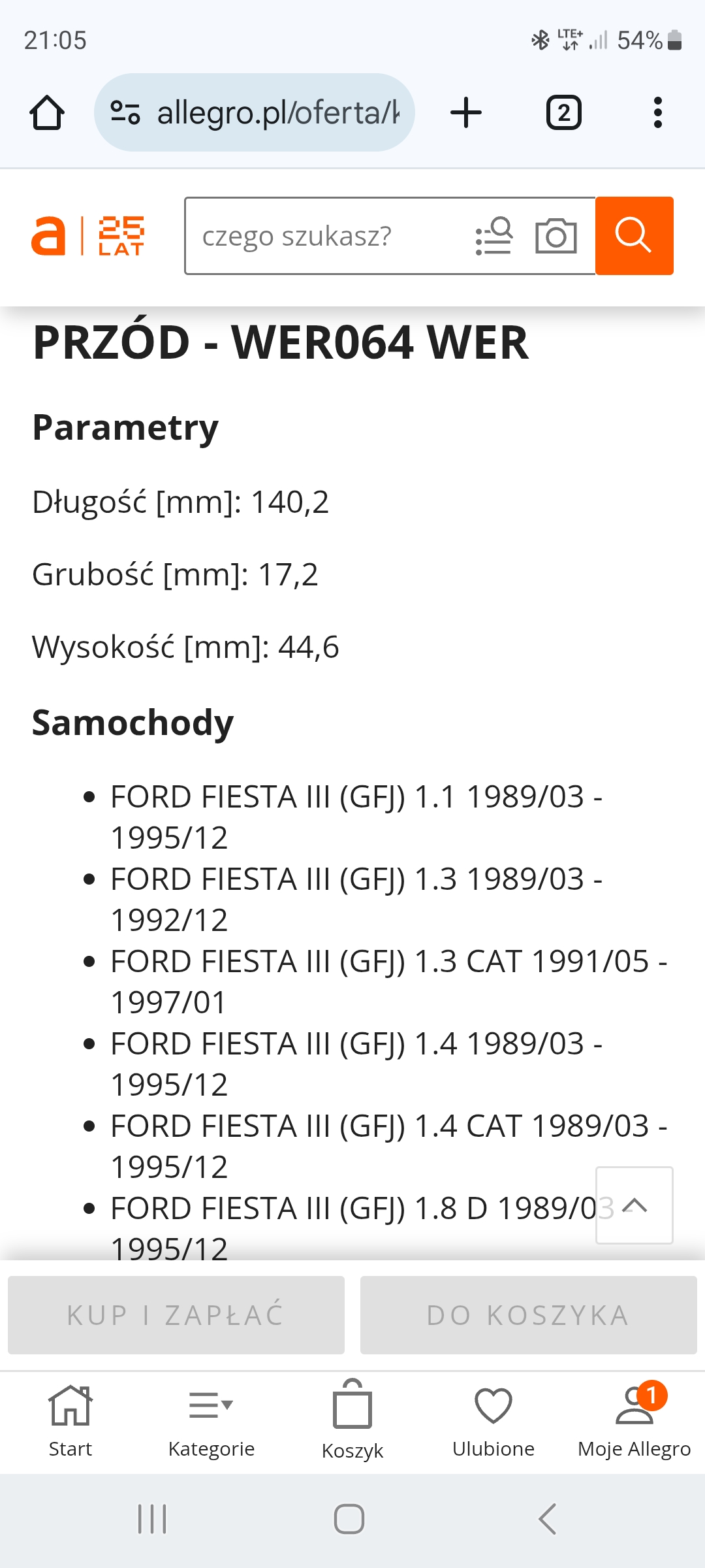 Sprzedam klocki hamulcowe wertteile WER064 ford fiesta nowe 50 zl
