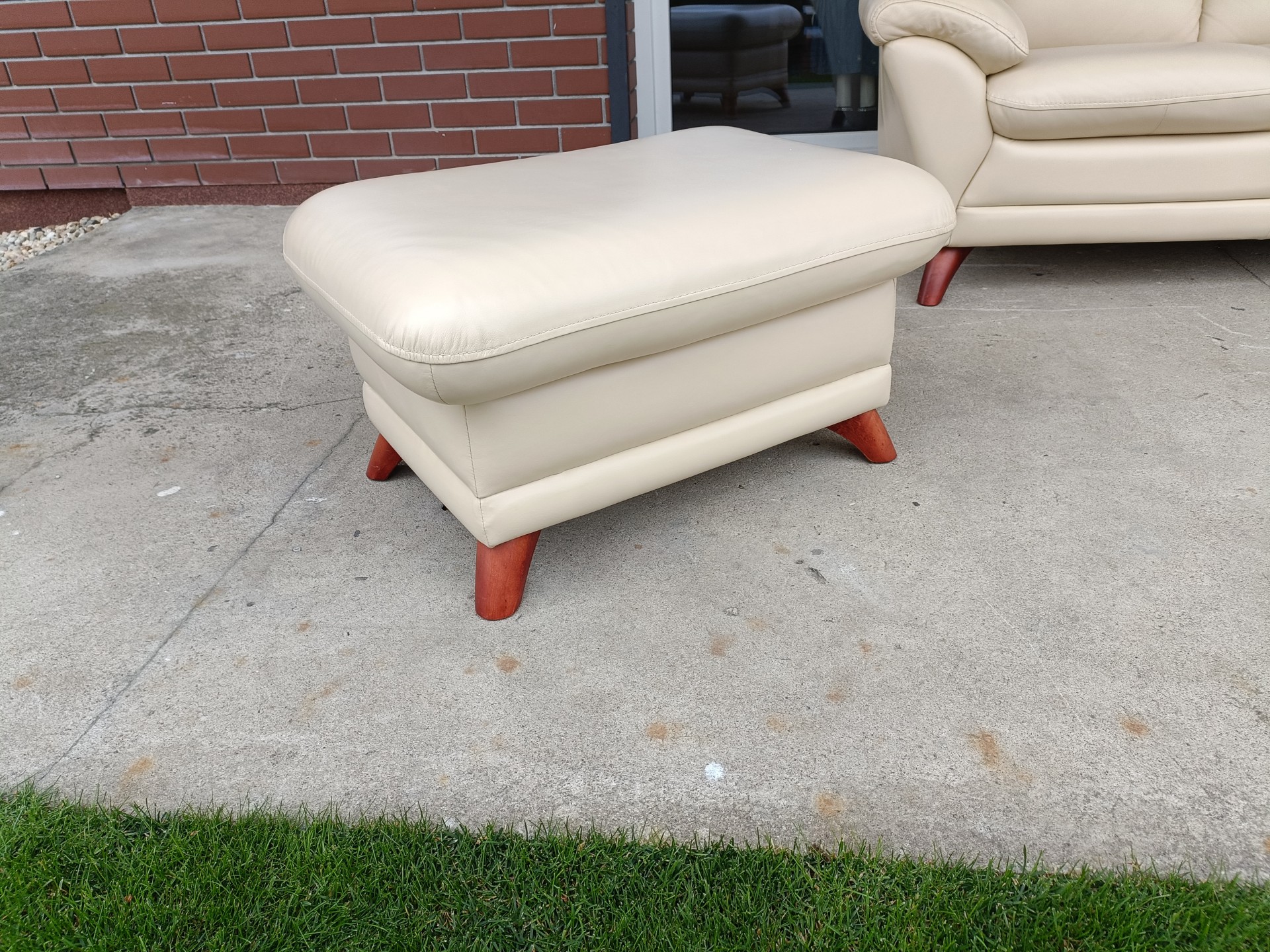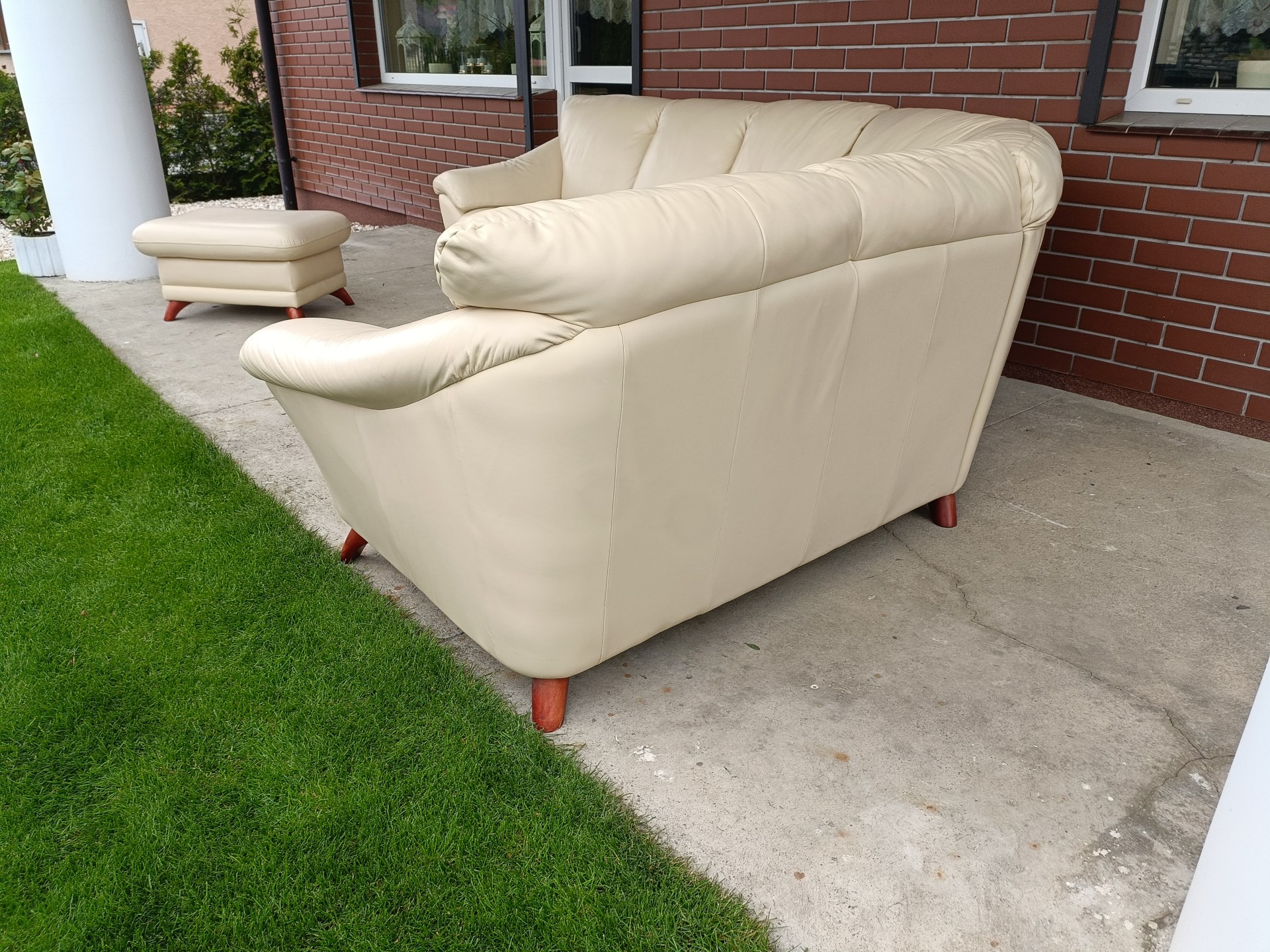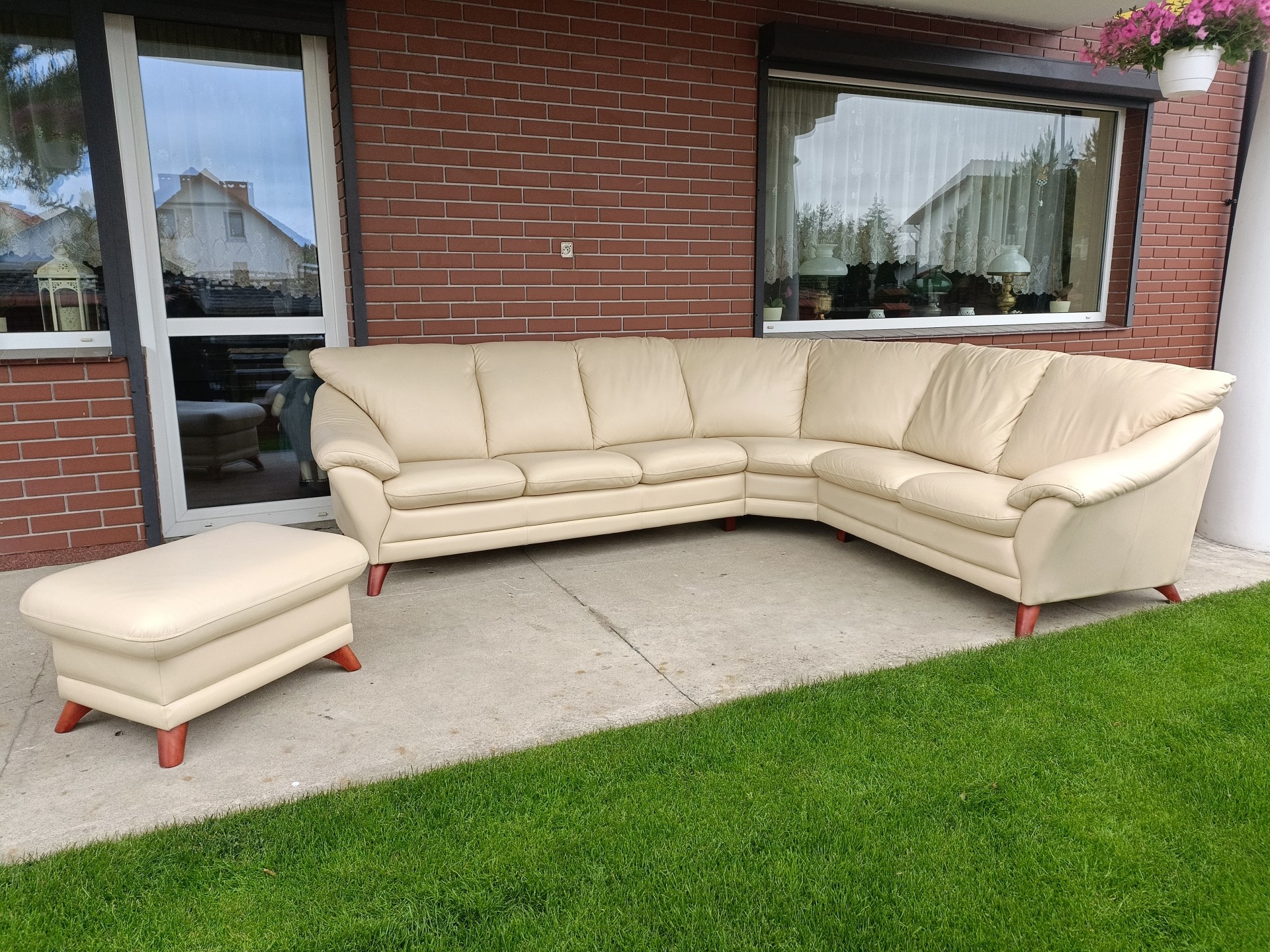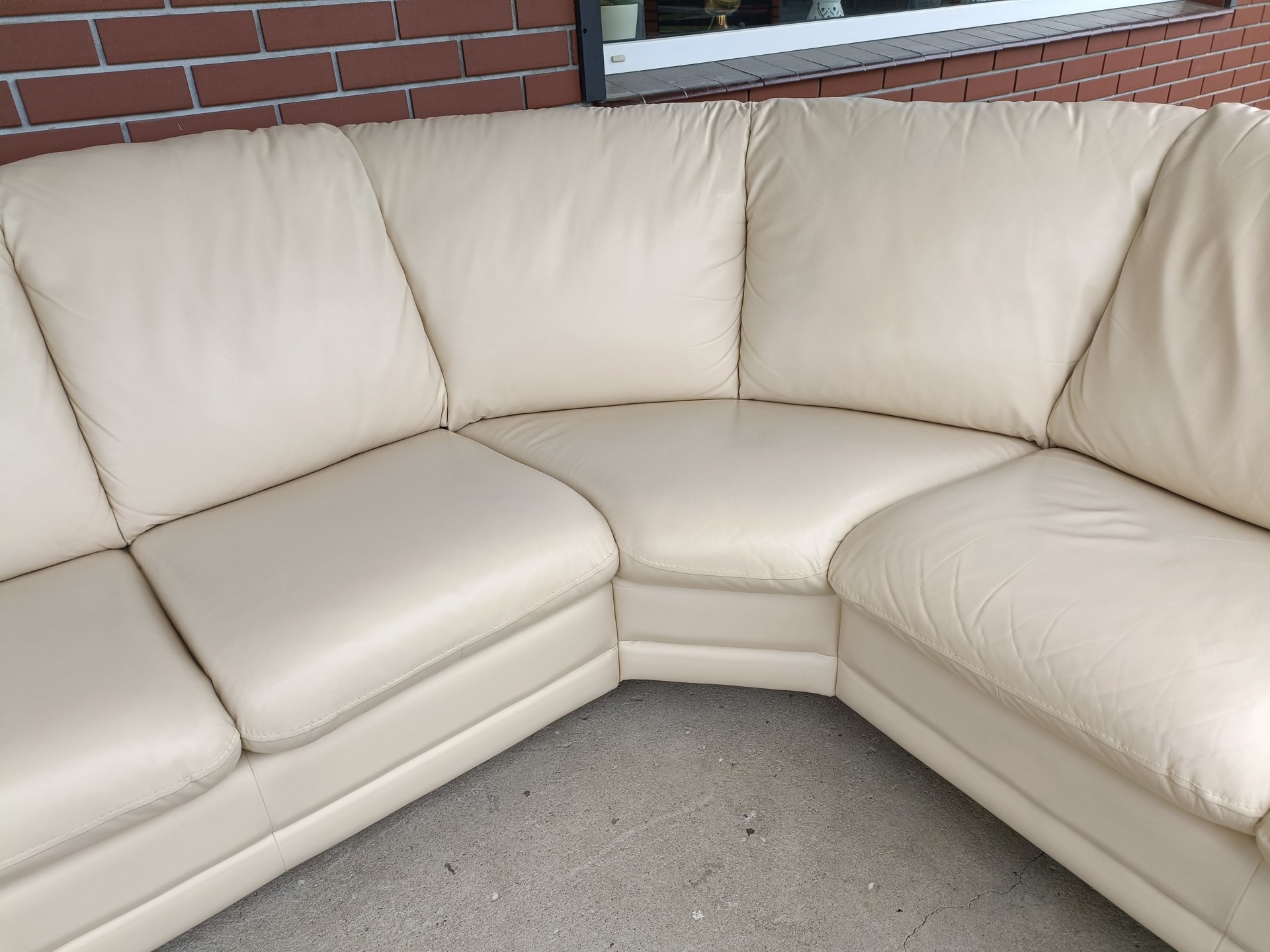 Sprzedam narożnik ze skóry plus pufa kolor ecru wymiary 3,00na 2,40 narożnik nie posiada funkcji spania stan bdb
