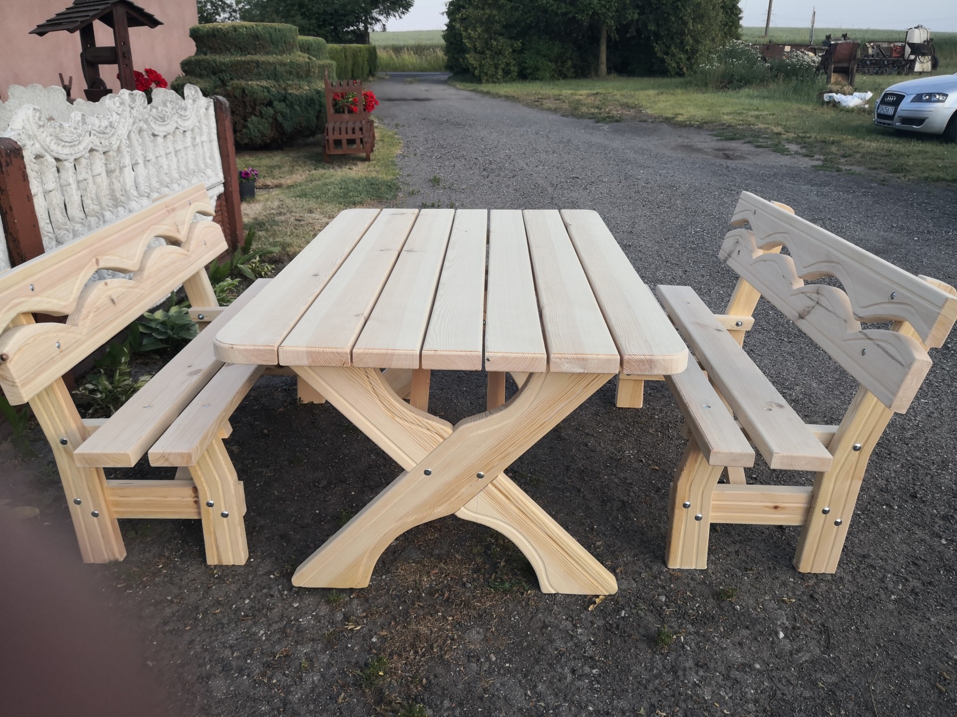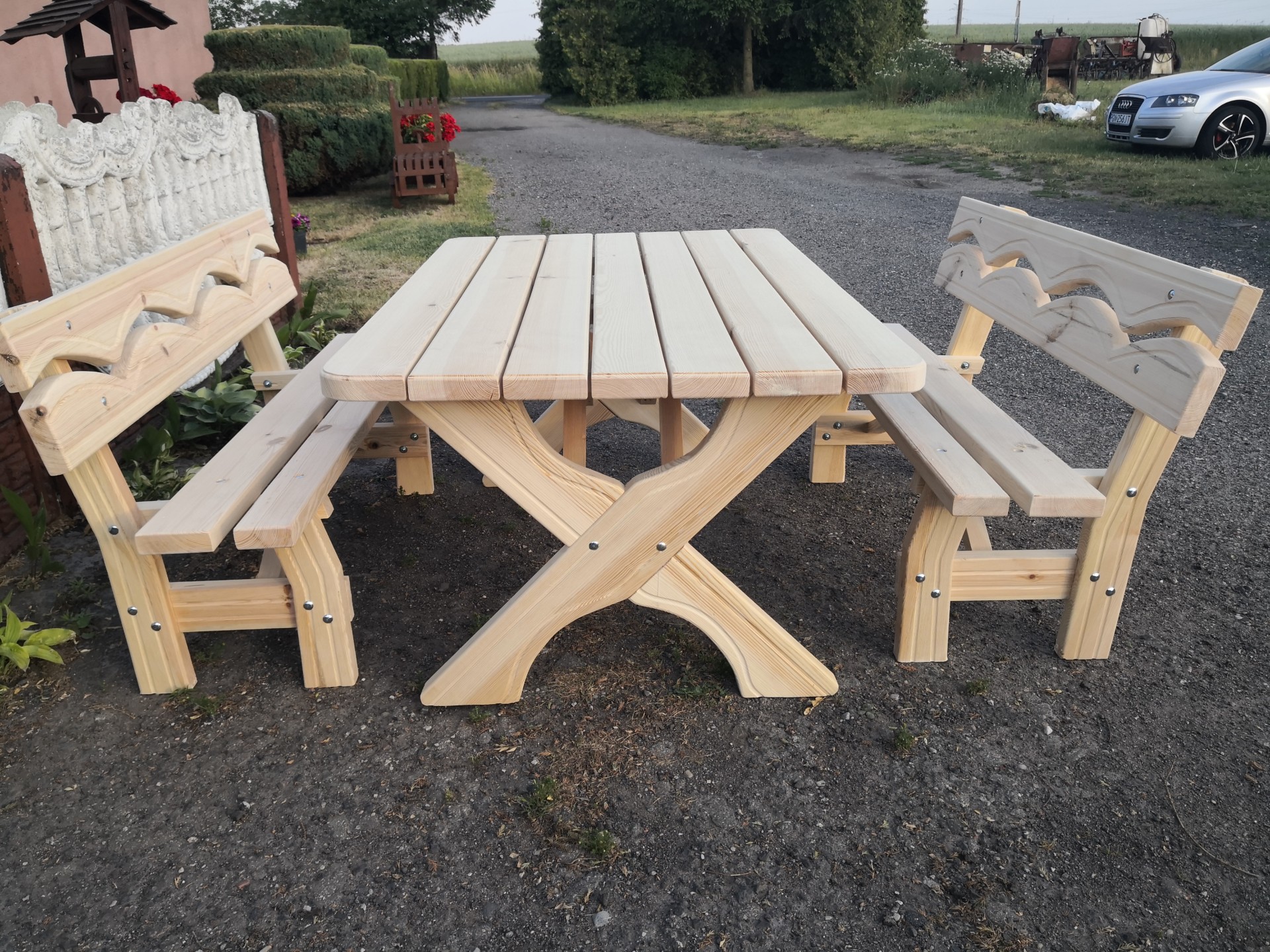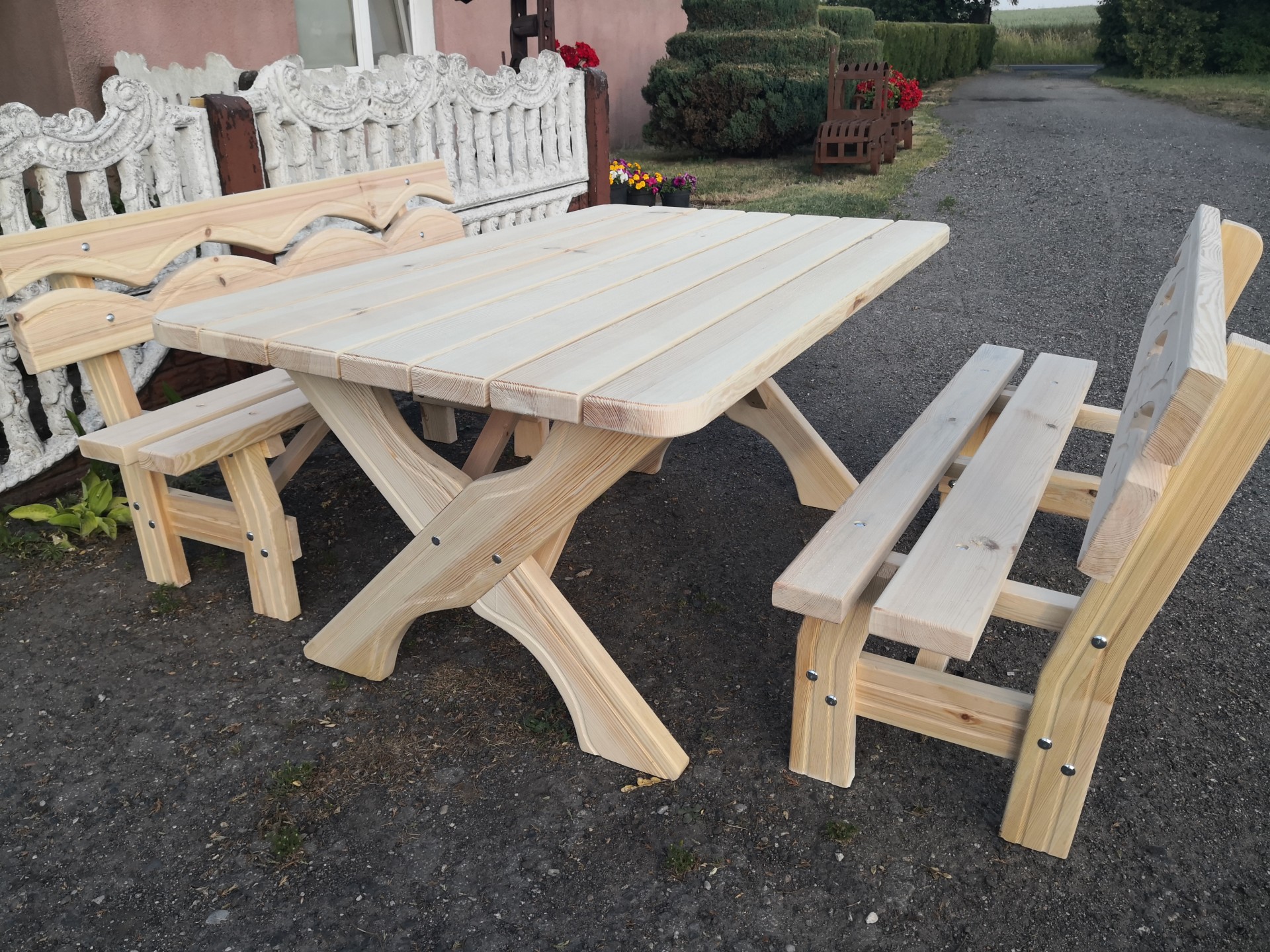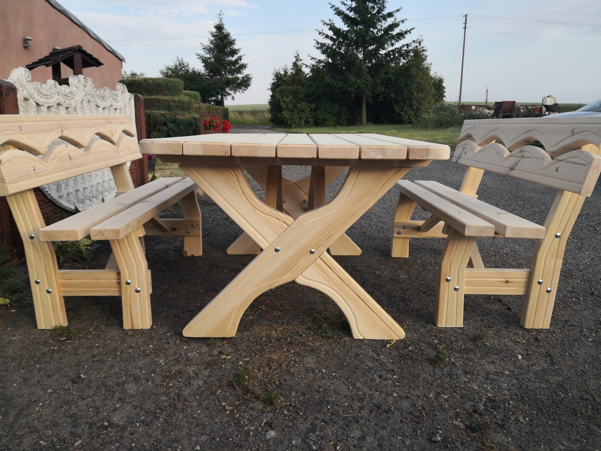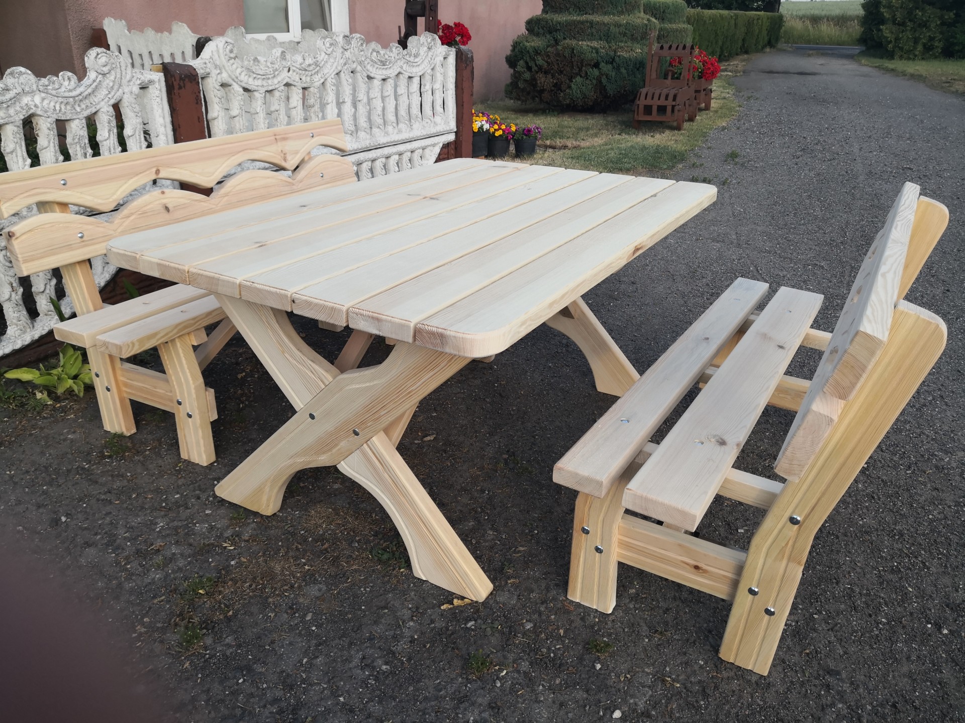 Sprzedam zestaw ogrodowy wykonany z drzewa sosnowego o wymiarach (stół 140*89 ławki dłuższe 150 cm) deska grubości 4.2 cm solidny, dobrze wyszlifowany polecam 695664355