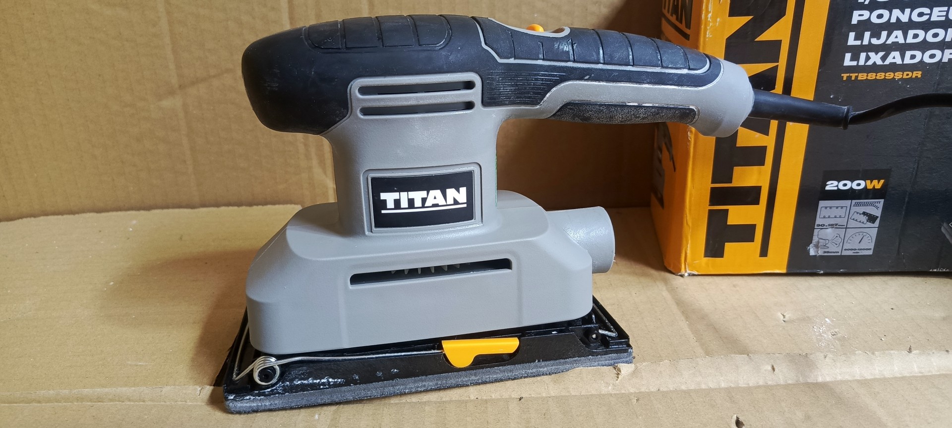 Przedmiotem sprzedaży jest szlifierka oscylacyjna titan ze stopka 115x230.