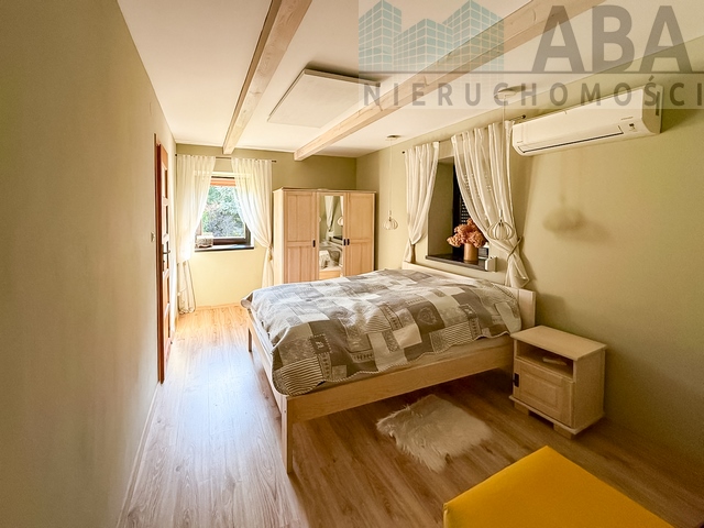 Brak klasycznego CO? Żaden problem – komfort zapewniają maty grzewcze w dwóch pokojach, koza, kominek oraz nowoczesna klimatyzacja z funkcją grzania. Instalacja elektryczna w miedzi.