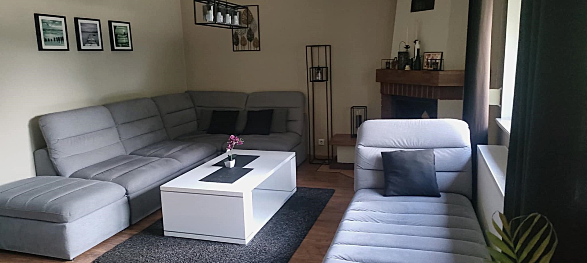 - salon z kominkiem