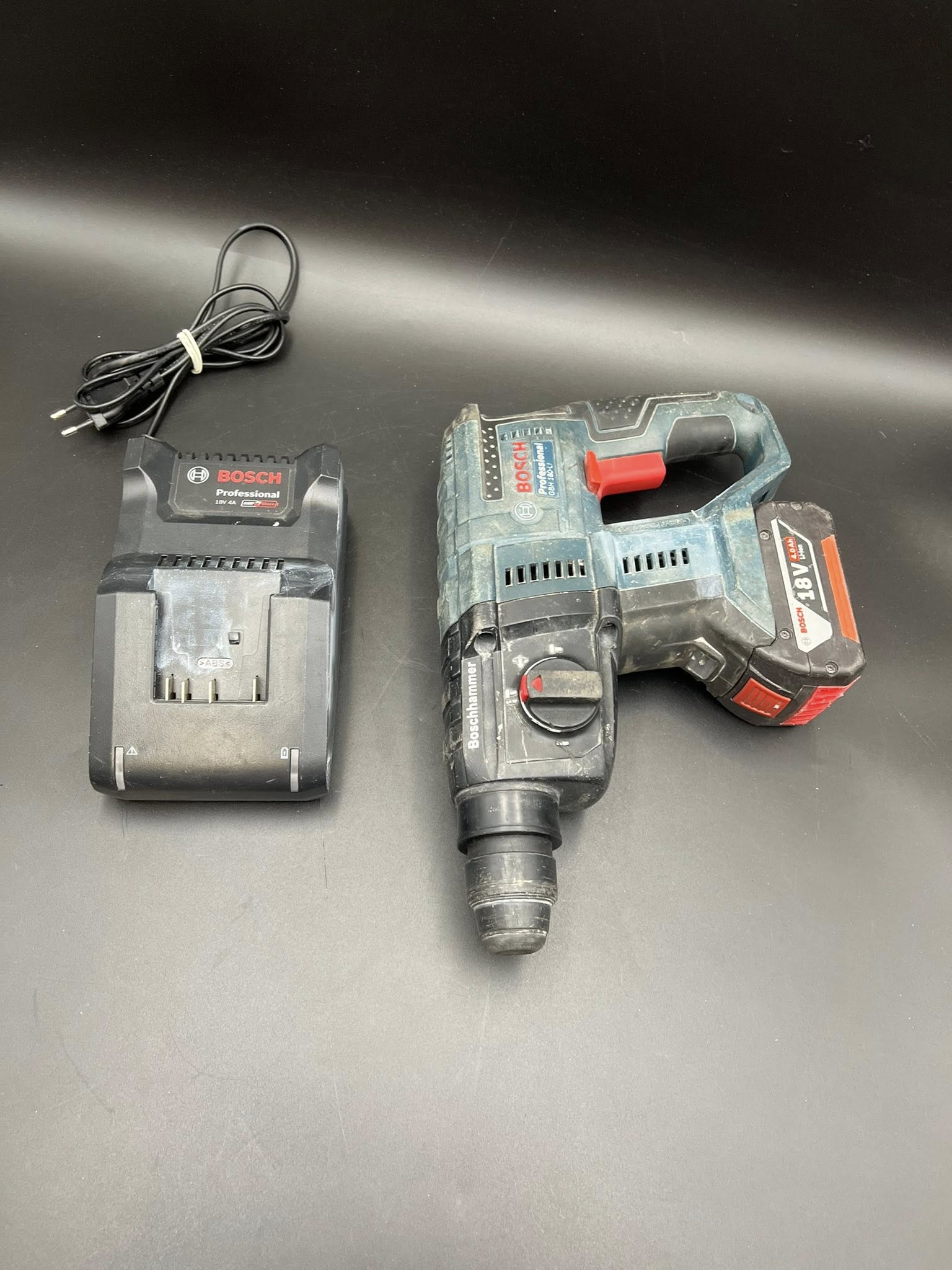 W zestawie: mlotowiertarka, akumulator 4.0 Ah, ładowarka