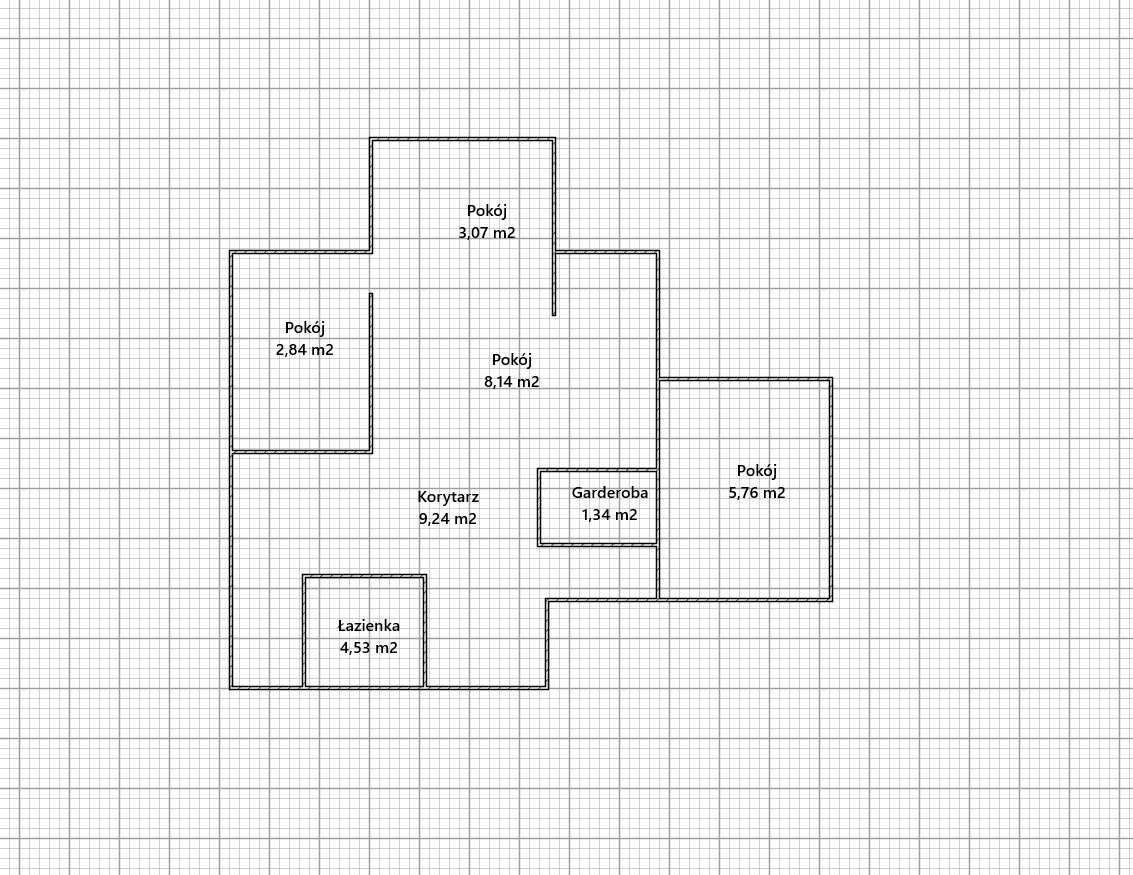 pokój(5,76 m2), pokój(3,07 m2), pokój(8,14 m2), garderoba(1,34 m2), korytarz(9,24 m2), łazienka(4,53 m2). Rzut pomieszczeń znajduje się w galerii zdjęć.
