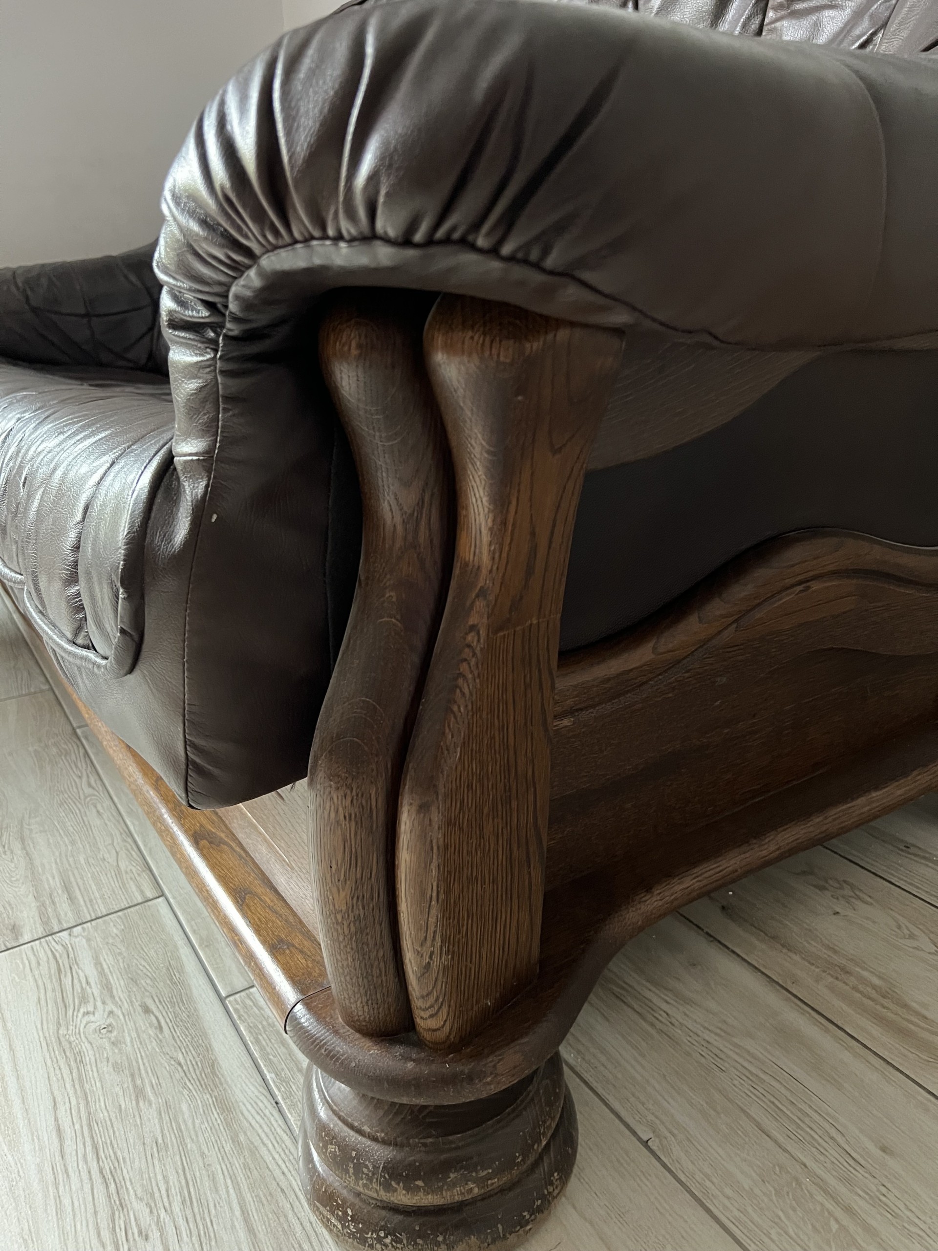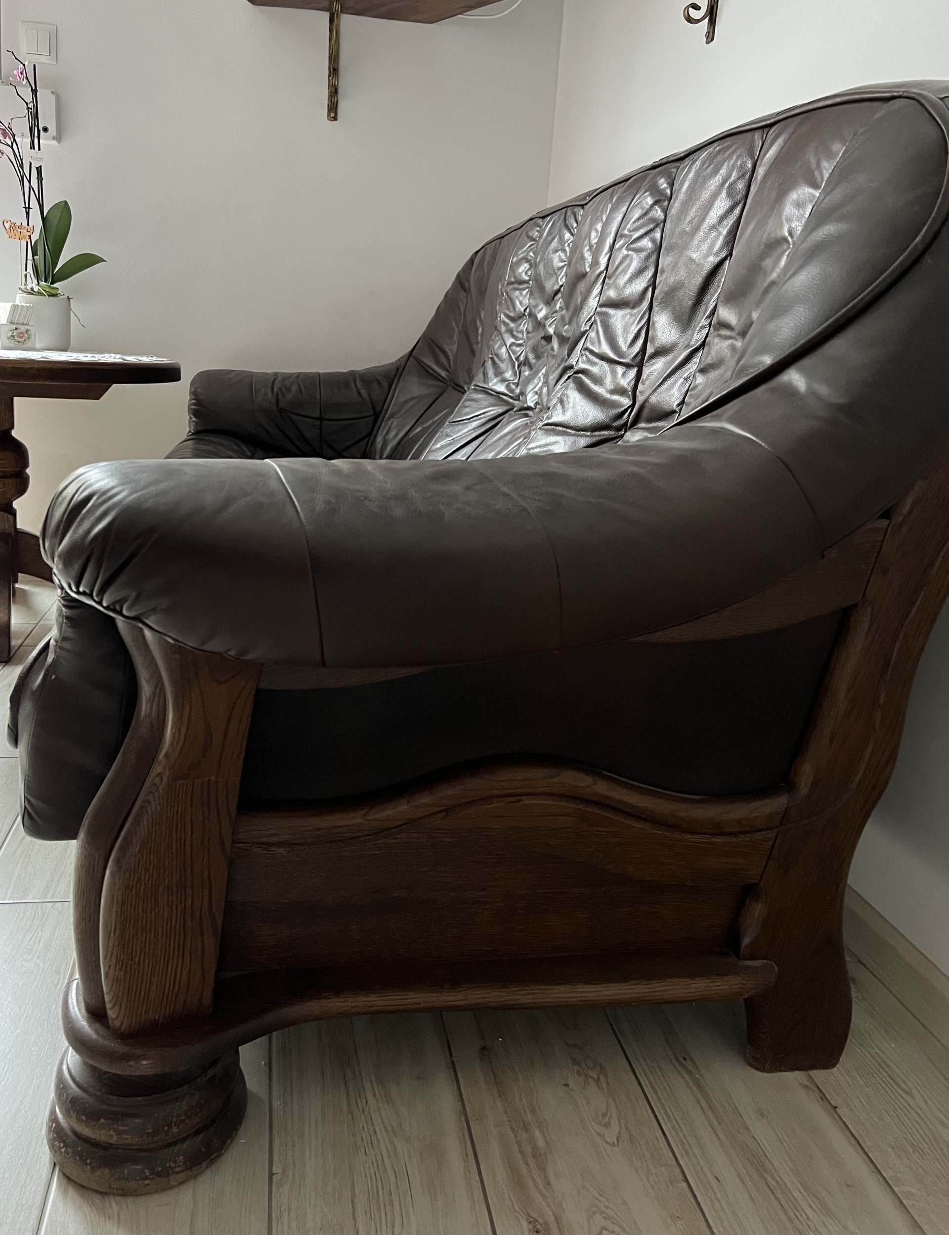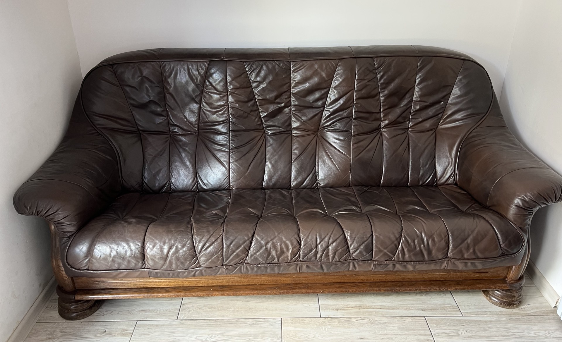 Sprzedam piękną kanapę ze skóry naturalnej na solidnym dębowym stelażu. Kanapa bardzo wygodna , w ciemno brązowym kolorze, o bardzo ładnym pikowaniu, niepowygniatana, nosi normalne ślady użytkowania, siedzisko nieco przytarte na szyciach ale spokojnie można używać. Polecam serdecznie.