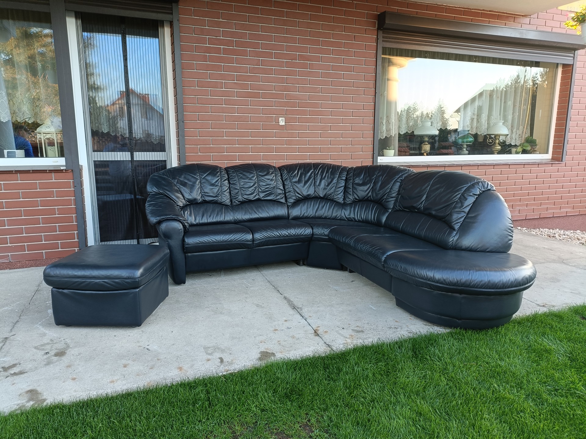 Sprzedam narożnik ze skóry plus pufa kolor ciemny grafit wymiary 240 na 240 nie posiada funkcja spania stan bdb