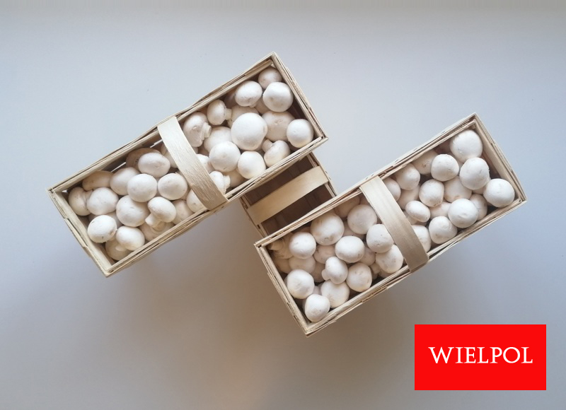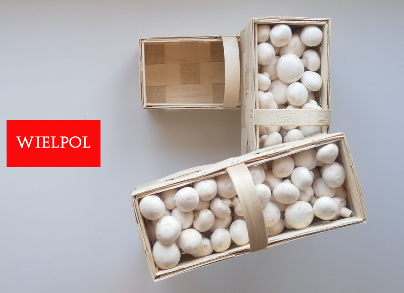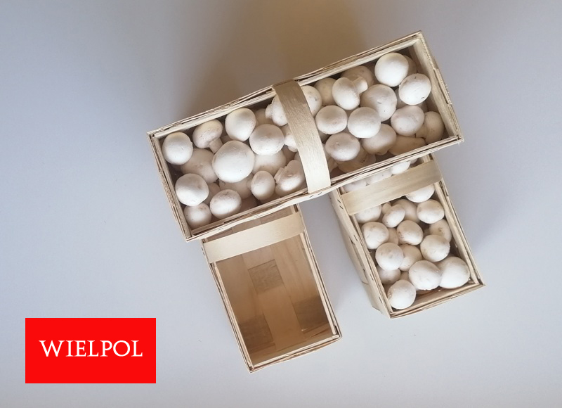 Sprzedaż drewnianych koszyków do białych pieczarek .