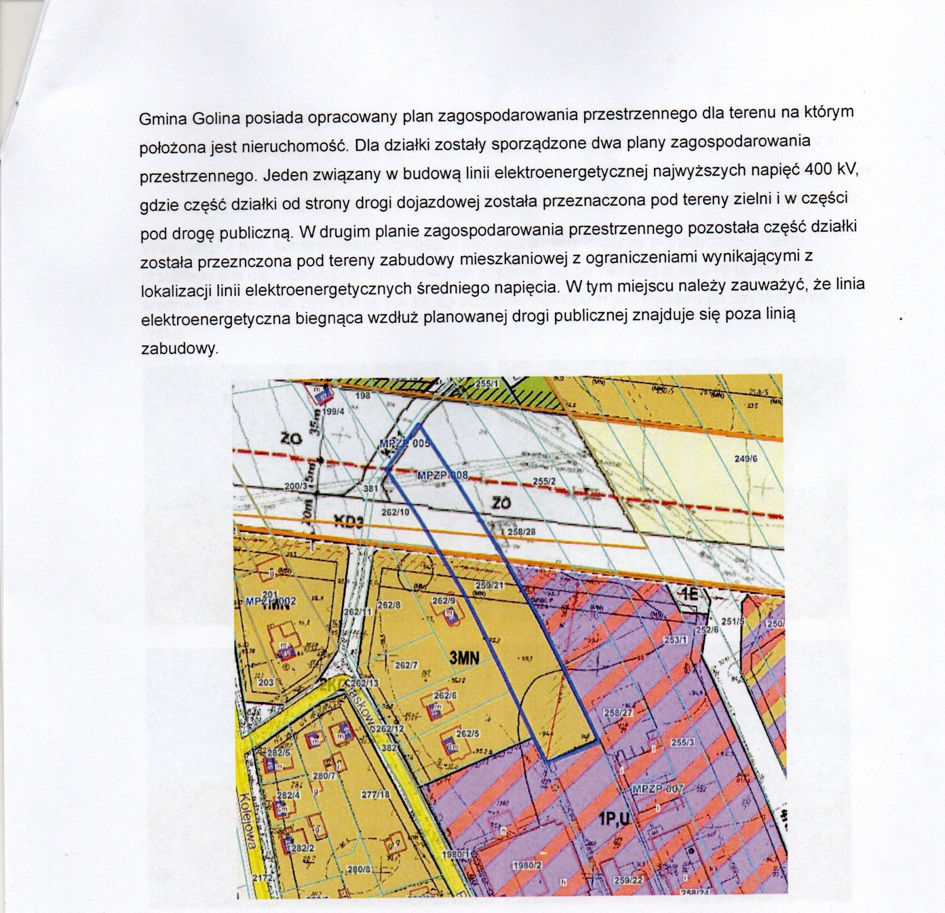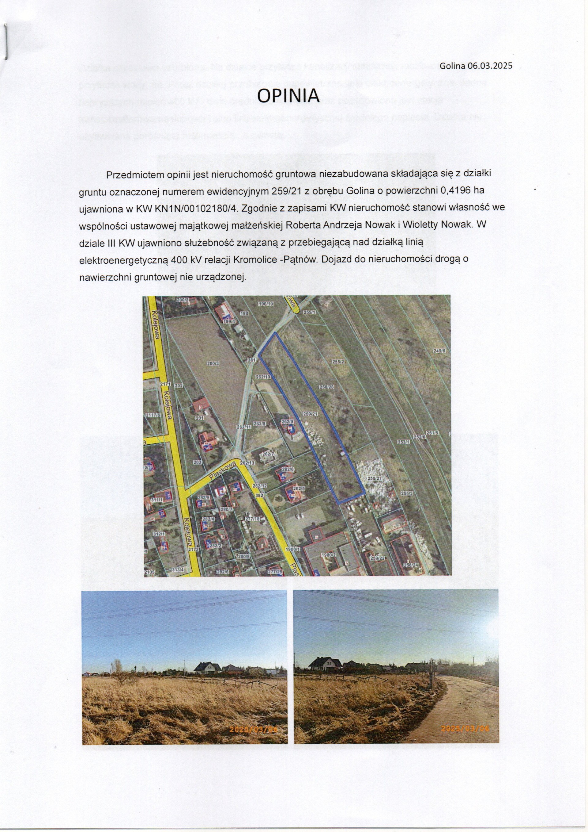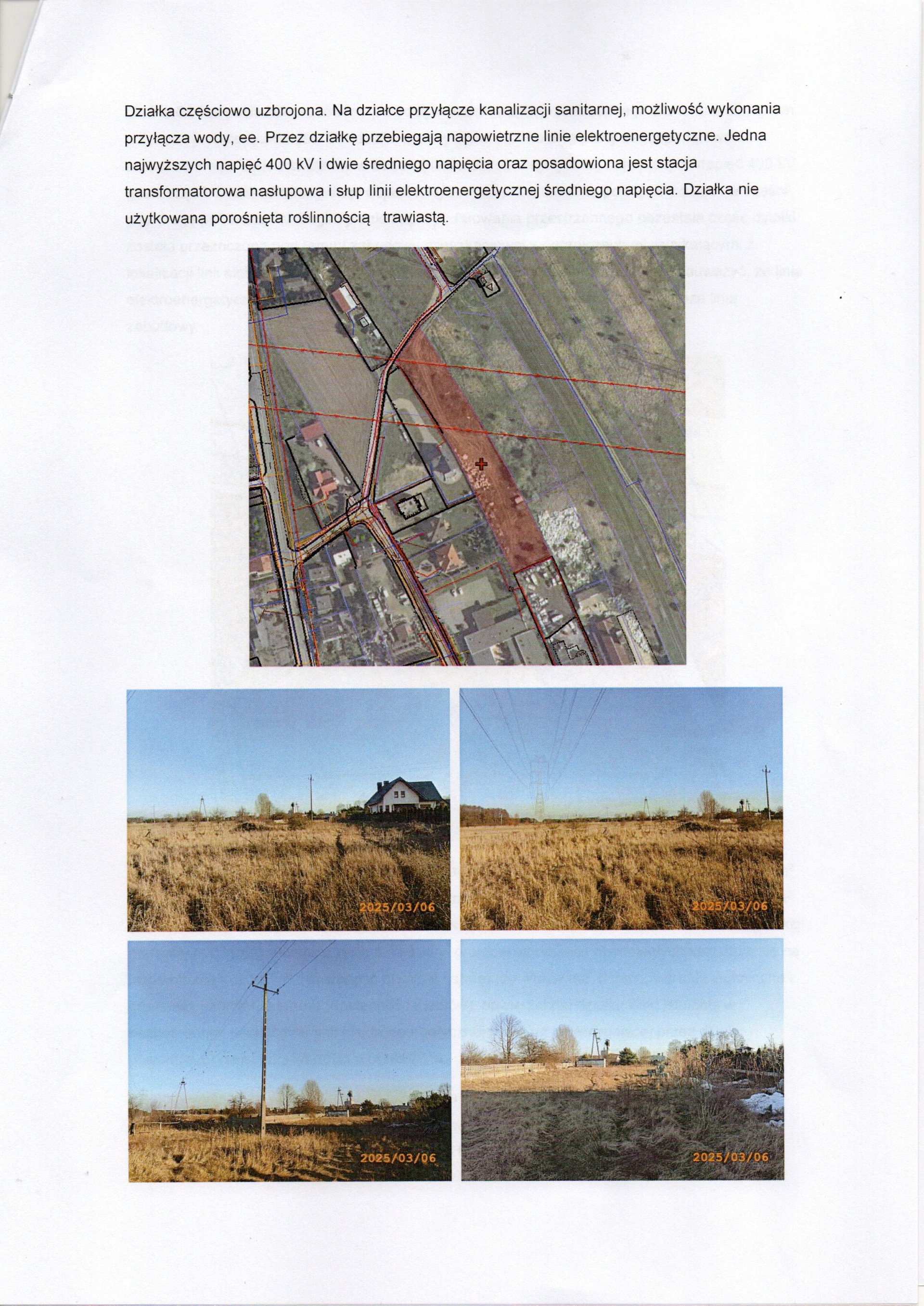 Sprzedam działkę nr 259/21 o całkowitej powierzchni 0,4196 ha. W tym 0,26 ha przeznaczone pod zabudowę mieszkaniową; 0,06 ha teren pod drogę i pozostała część pod tereny zielone. Cena okazyjna (do negocjacji) z uwagi na służebność - przebiegająca przez działkę linia energetyczna.