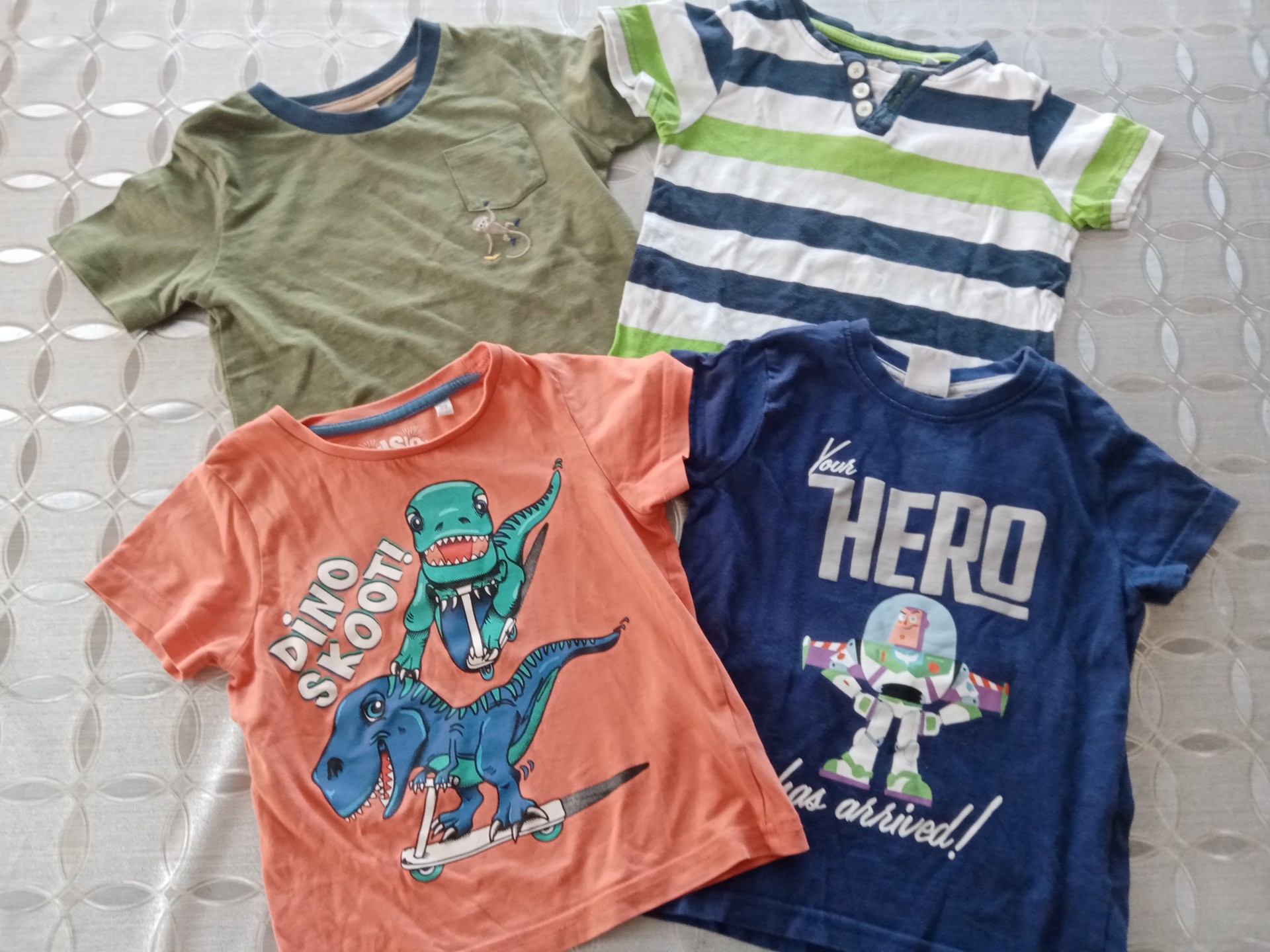 Sprzedam widoczne na zdjęciu koszulki z krótkim rękawem dla chłopca w rozmiarze 98. Stan idealny. Cena 20 zł za wszystko.