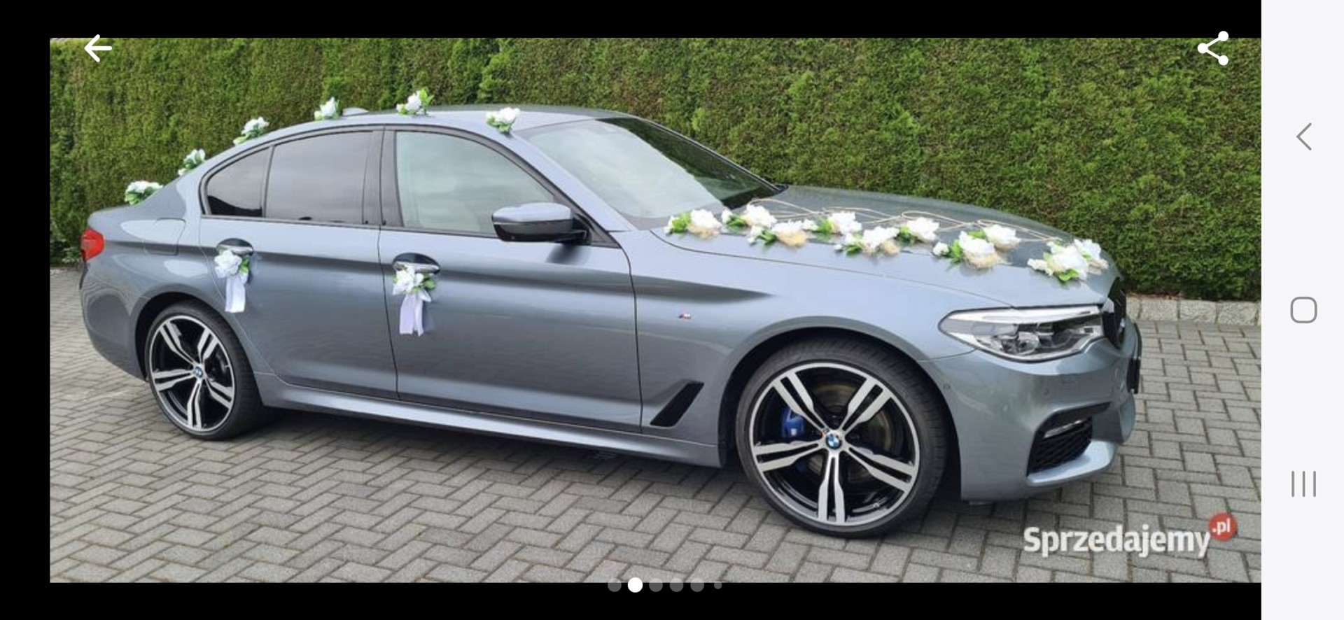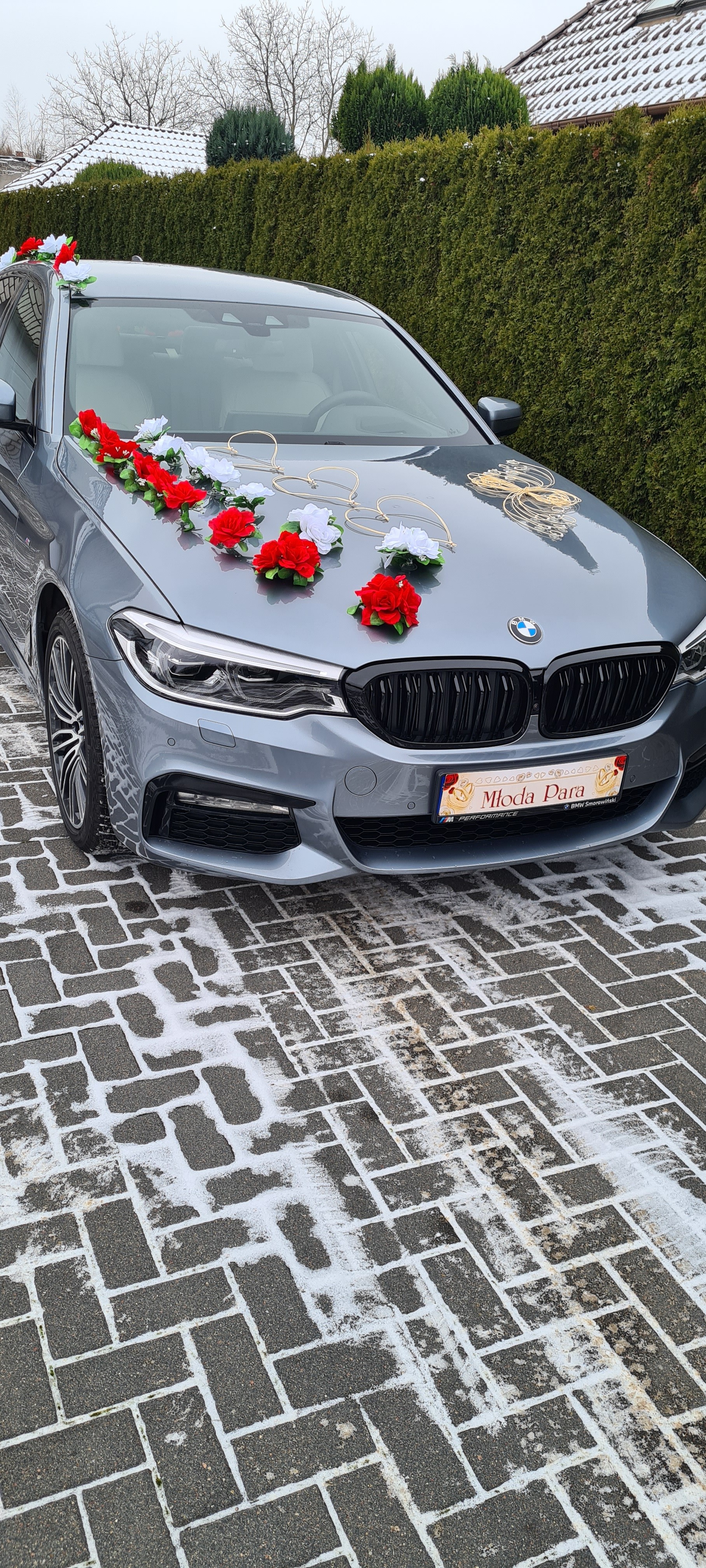 Oferuje Państwu usługę podwiezienia na uroczystość ślubną , weselną lub inną uroczystość czy imprezę samochodem marki BMW serii 5 z przybraniem widoczne na zdjeciach lub jest możliwość przybrania we własnym zakresie z podjazdem do firmy dekoracyjnej.