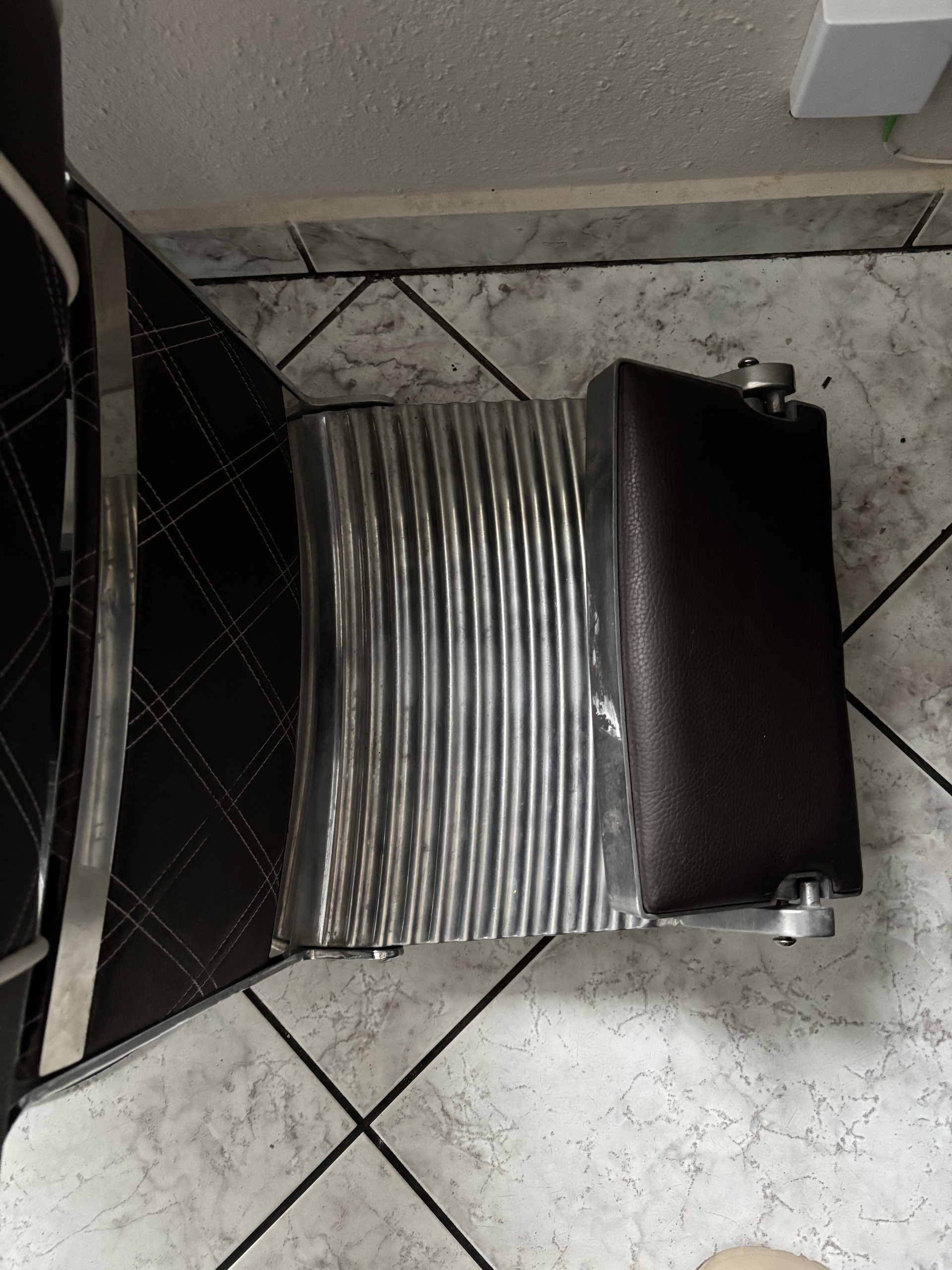Sprzedam elegancki i wygodny fotel barberski w kolorze ciemnobrązowym z białymi akcentami. Fotel wykonany z wysokiej jakości ekoskóry oraz solidnym, metalowym wykończeniem podłokietników. Doskonały zarówno do nowoczesnego, jak i klasycznego salonu fryzjerskiego lub barberskiego.