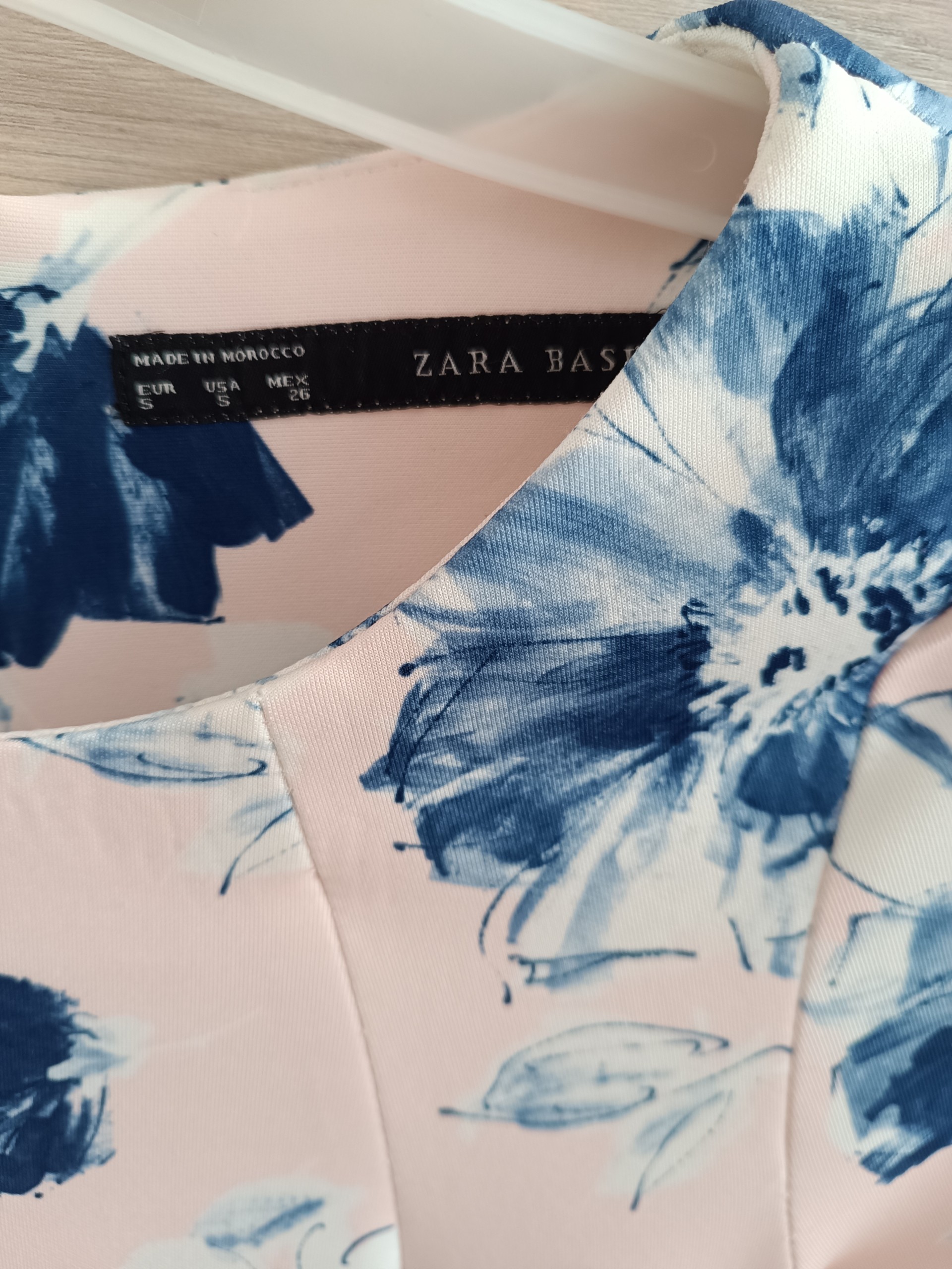 Sprzedam elegancką, różowa sukienkę mini w błękitne i białe kwiaty w rozmiarze S (36) marki Zara. Sukienka ma rękaw 3/4, falbankę u dołu, zapinana jest na suwak z tyłu. Materiał jest lekko rozciągliwy, nie gniecie się w ogóle, nie wymaga prasowania, pięknie dopasowuje się do sylwetki. Suknia będzie idealna na różnego rodzaju okazje (wesele, chrzciny, komunia św., a nawet do pracy).