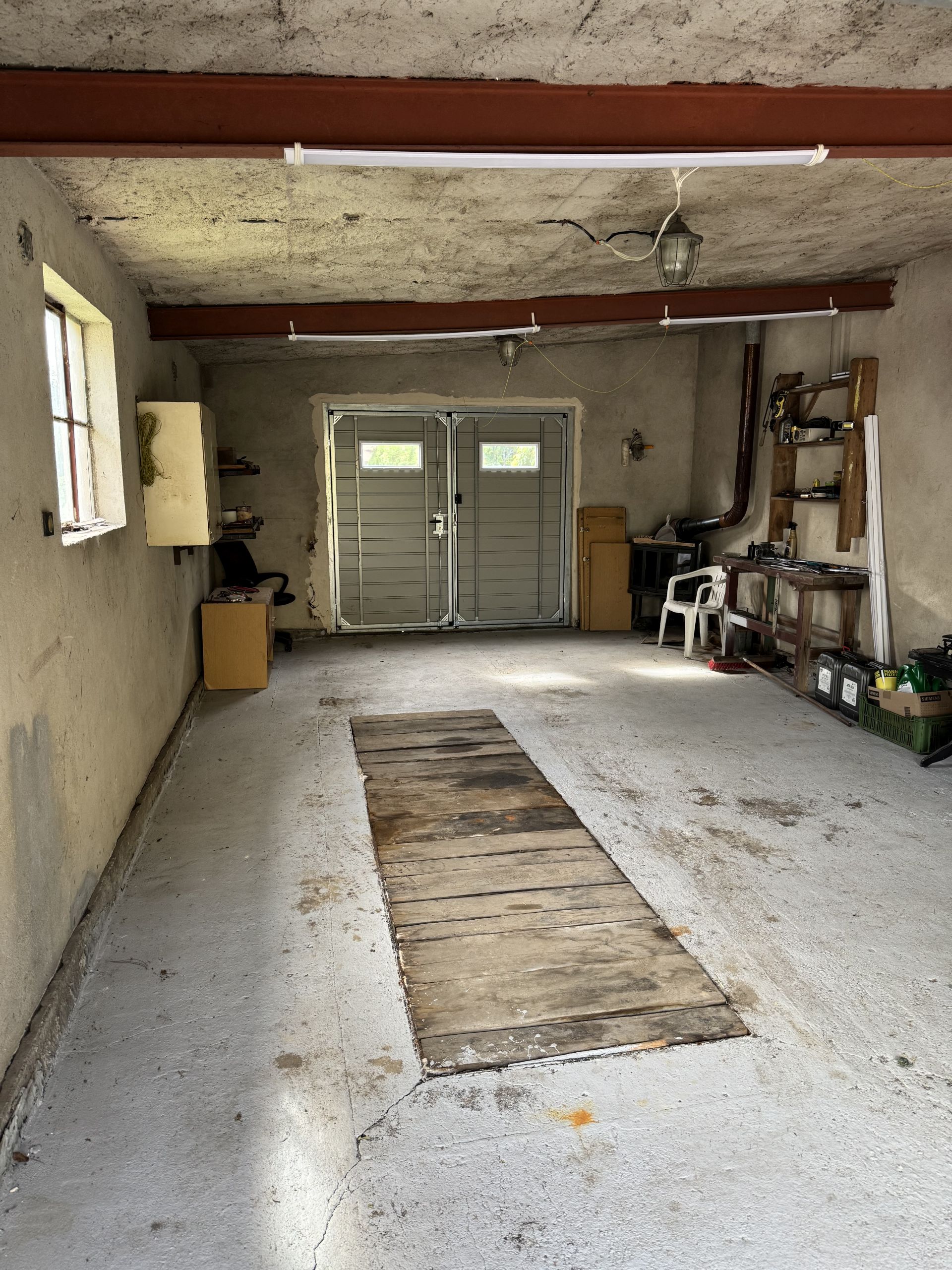 Kanał wewnątrz garażu o wymiarach: (3,6 m długi) x (1,0 m szeroki)