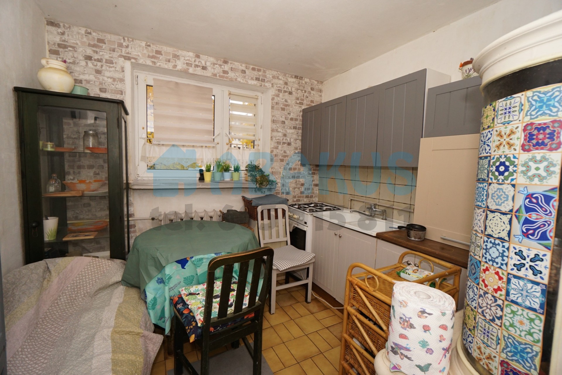 Ściany malowane emulsyjnie, podłogi terakoty i panele podłogowe. Łazienka - ściany częściowo w glazurze, podłogi terakota, wyposażona w wannę. Wszystkie okna PCV, w salonie wyposażone w rolety zewnętrzne).