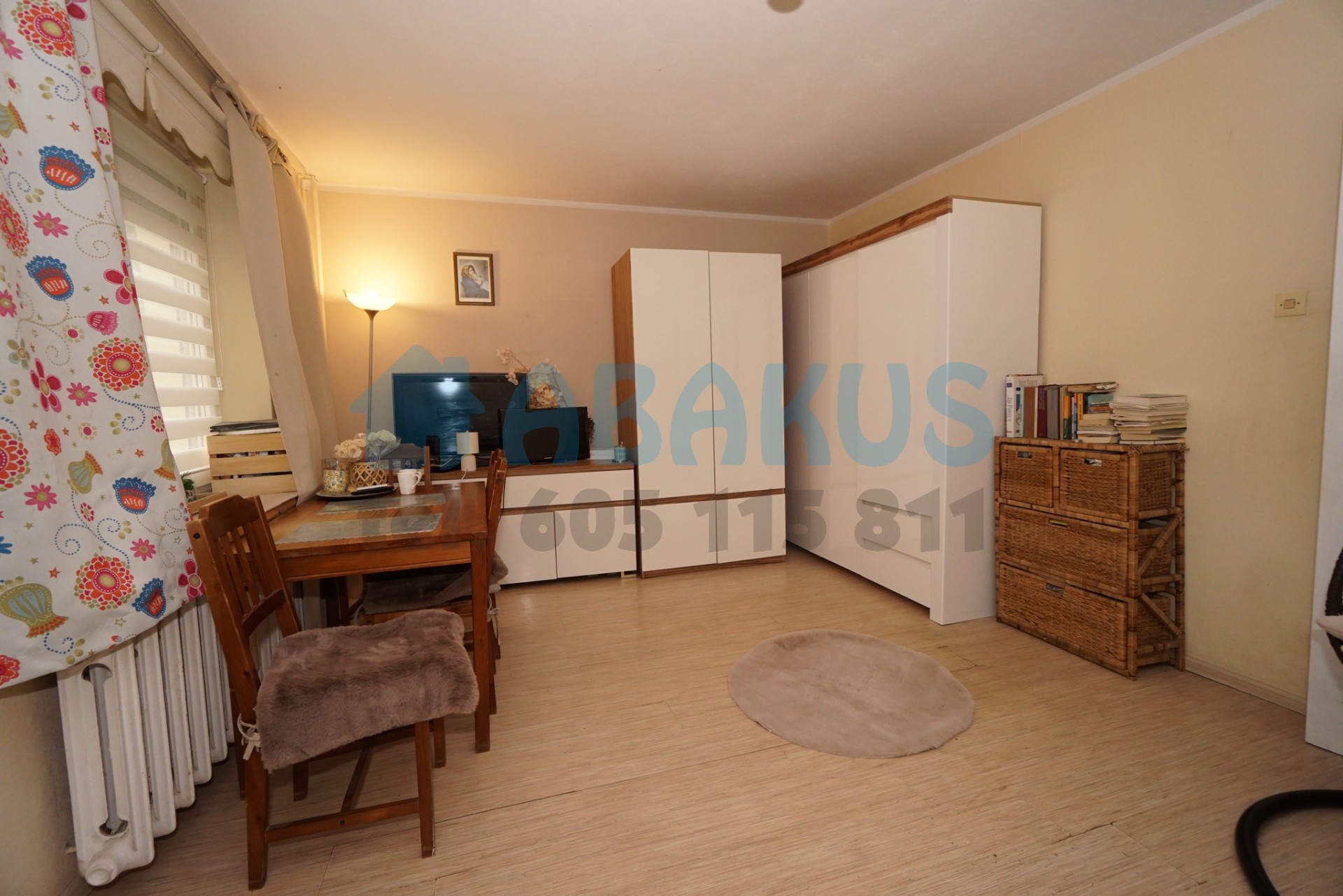 Lokal mieszkalny składa się z dużego salonu (21m2), pokoju sypialnego (11m2), kuchni, korytarza, łazienki z wc.