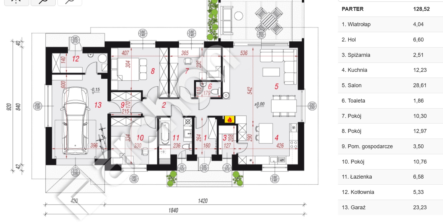 garaż i kotłownia.