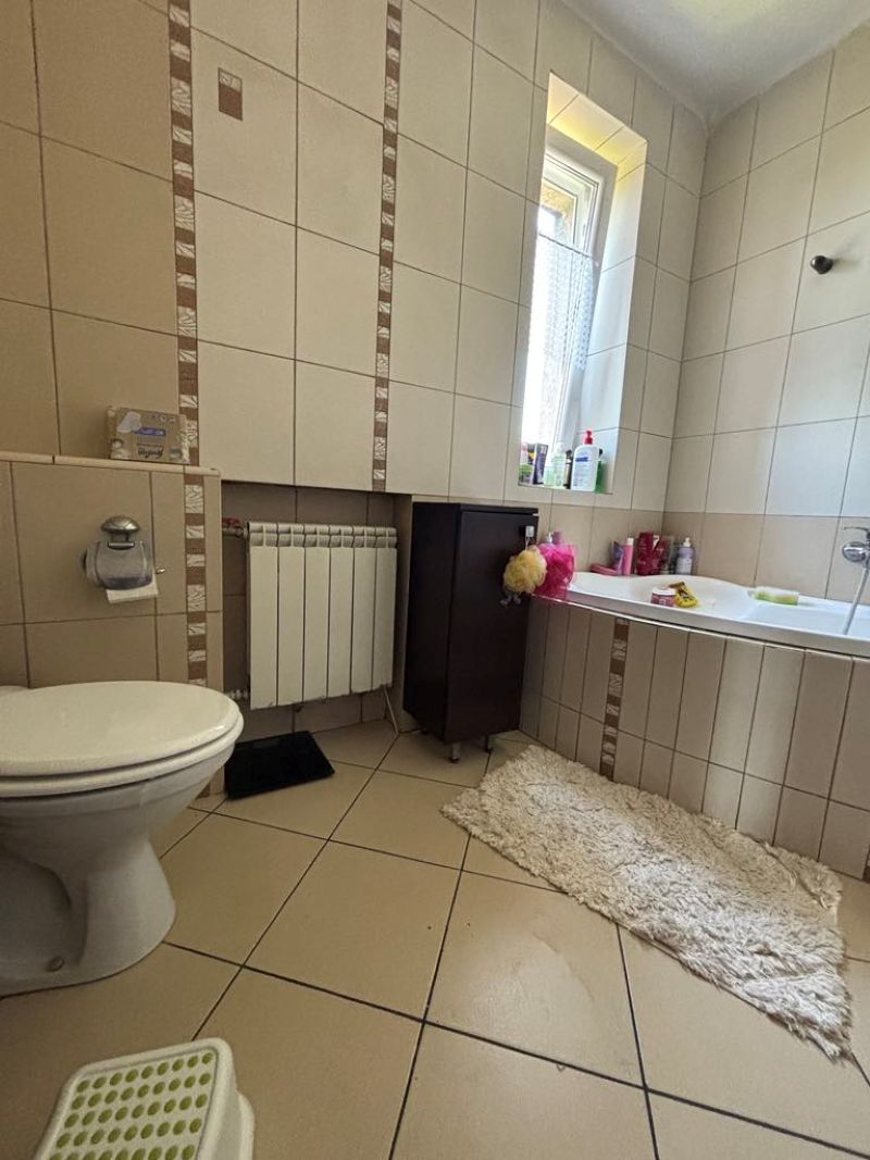Dom wybudowany z cegły, ocieplony jest styropianem a strych wełną ceramiczną. Ściany wewnątrz budynku gładź. Okna 3 szybowe , wymienione w 2022 roku. Ogrzewany bardzo oszczędna pompą ciepła – niskie rachunki za prąd ( przygotowanie do instalacji fotowoltaicznej) . Gaz doprowadzony do budynku z możliwością podłączenia instalacji gazowej. Elektryka miedziana (świeżo po przeglądzie), prąd trójfazowy. Woda i kanalizacja miejska.