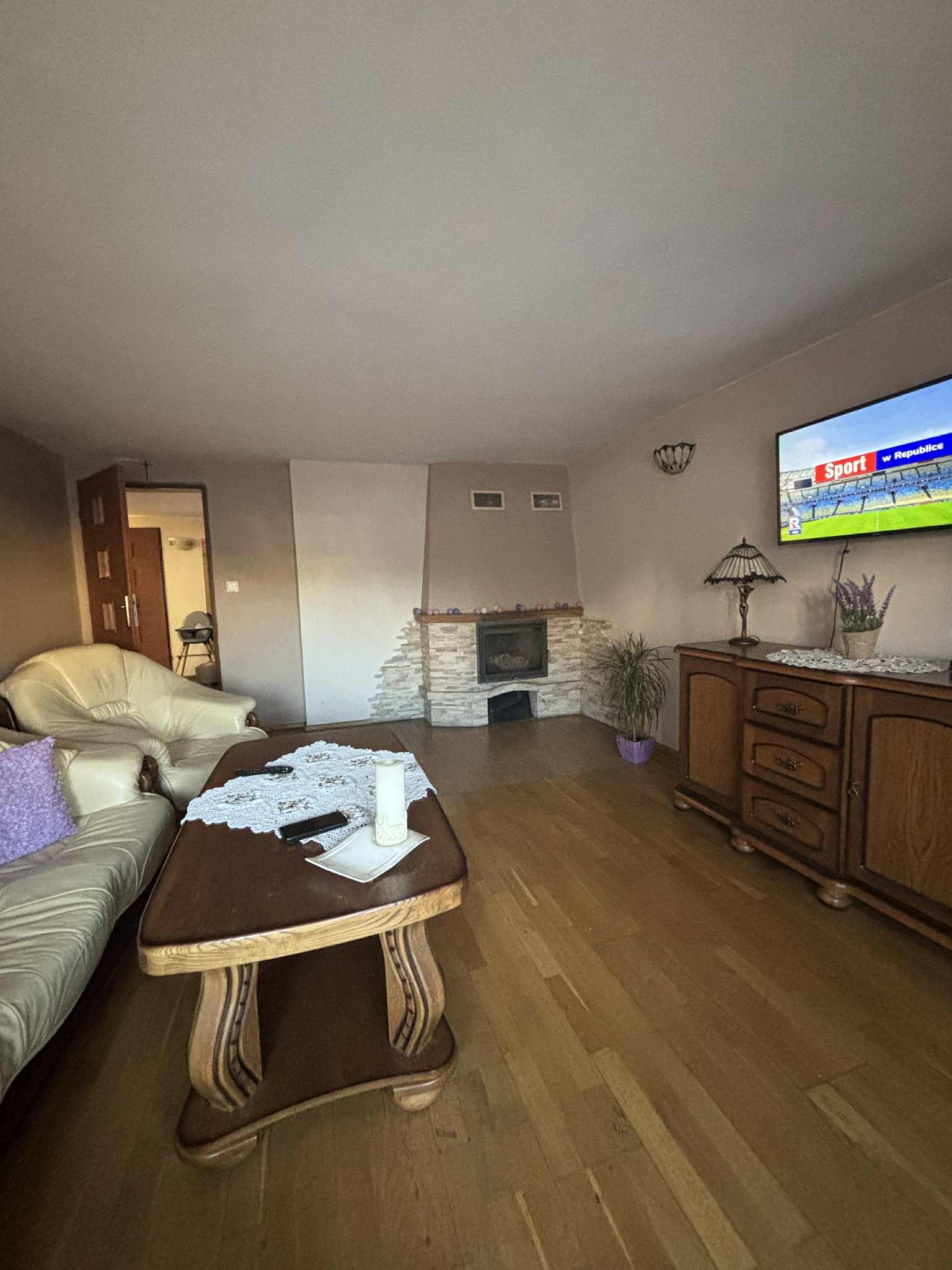- salon z kominkiem