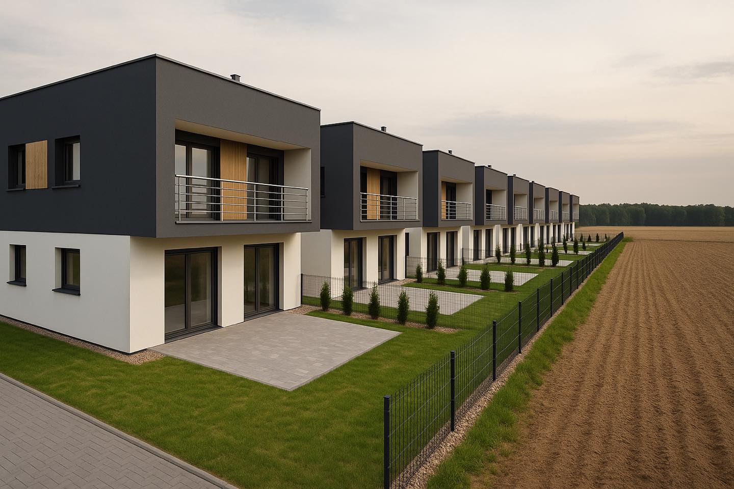 To nowoczesne osiedle 7 komfortowych bliźniaków, zaprojektowane z myślą o osobach, które szukają harmonii pomiędzy spokojem a bliskością miasta.