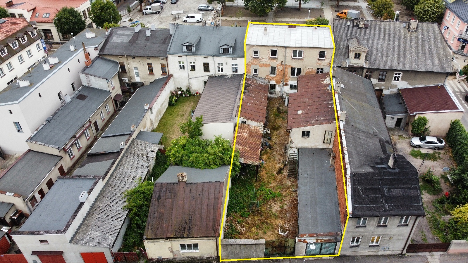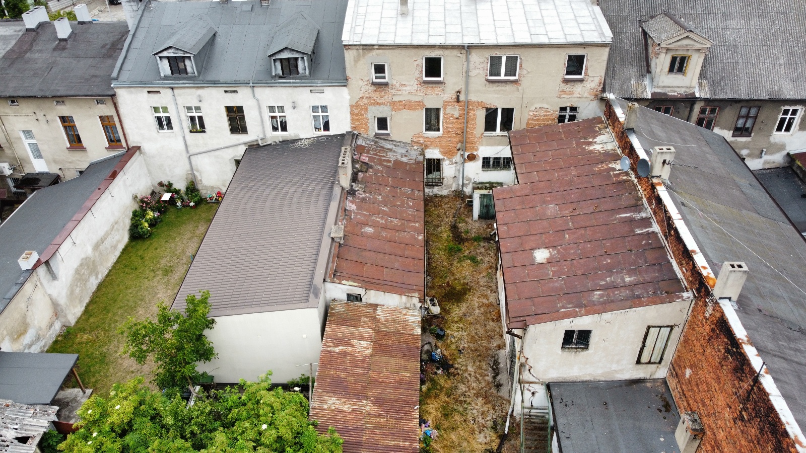 Oprócz budynku kamienicy na działce znajdują się: przylegająca oficyna o pow. 30m2, budynek służący jako magazyn o pow. 66m2, garaż 57m2.
