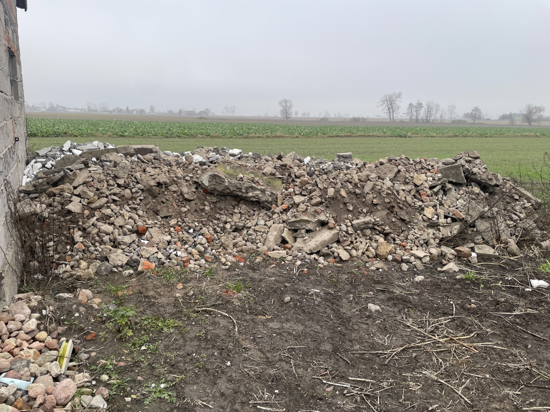Gruz żelbetowy, kamienie polne, pustaki żużlowe.