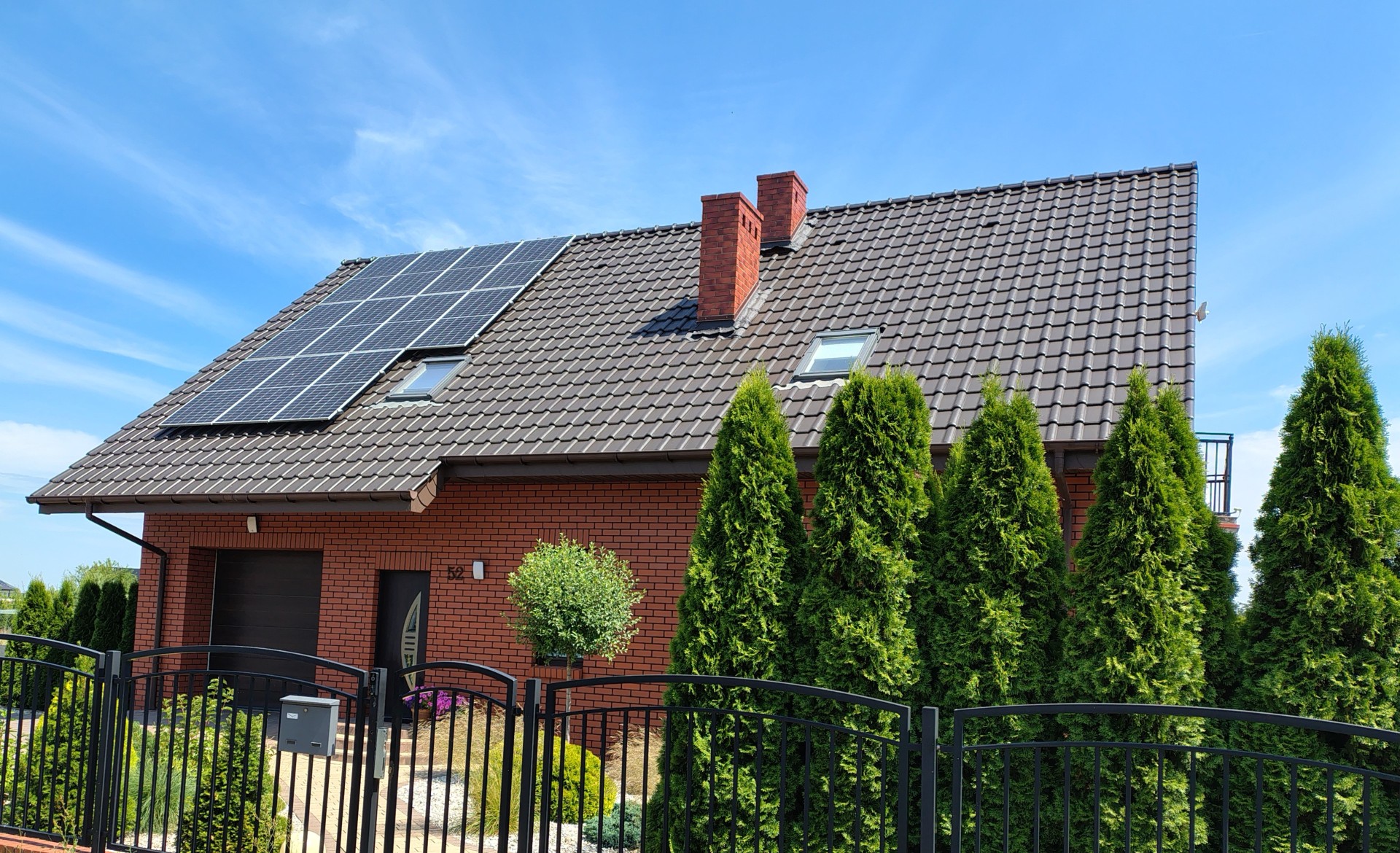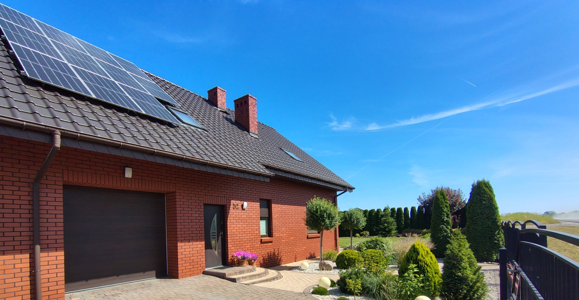 Do sprzedaży dom wybudowany w 2013 roku w pięknej, cichej okolicy usytuowany na zagospodarowanej działce o powierzchni 16,7a, z 2 garażami. Wysoki standard. Niskie koszty utrzymania! Powierzchnia domu 149 m2, garaż 22 m2, 6,72 m2 kotłownia. Parter: salon z aneksem kuchennym i wyjściem na taras, pokój/sypialnia gościnna, łazienka z prysznicem. Poddasze: 3 sypialnie, w tym jedna z garderobą, łazienka z wanną i kabiną prysznicową, garderoba, pralnia. Ściany z Porothermu, ocieplone styropianem 20 cm, plus cegła klinkierowa, pokrycie dachu - dachówka. Ogrzewanie - pompa ciepła plus fotowoltaika, możliwość zainstalowania kominka w salonie. Działka - 2 wjazdy na posesję, 2 garaże (w bryle domu oraz wolnostojący), altana grillowa, studnia głębinowa, podlewanie zautomatyzowane, przydomowa oczyszczalnia ekologiczna. Bardzo dobra lokalizacja - spokojne osiedle domów jednorodzinnych, droga asfaltowa, szybki i łatwy dojazd do Konina.