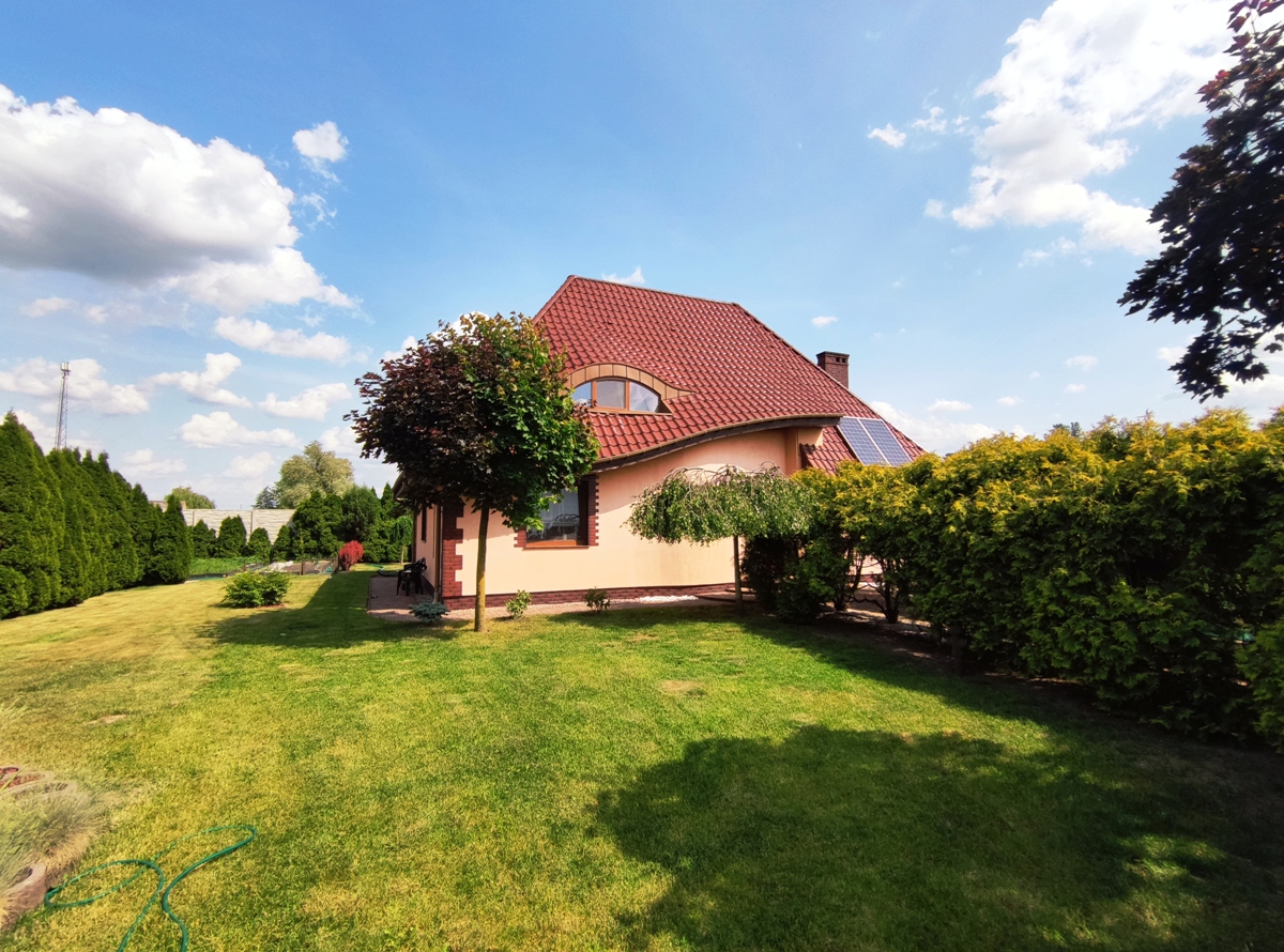 Zapraszam do zapoznania się z ofertą sprzedaży nieruchomości gruntowej zabudowanej, zlokalizowanej w miejscowości Główiew przy ul. Kaliskiej w gminie Stare Miasto w odległości około 14 km (15 minut samochodem) od centrum Konina. Nieruchomość położona z dala od miejskiego zgiełku, w spokojnej miejscowości w sąsiedztwie nowo powstałych i istniejących budynków mieszkalnych, terenów niezabudowanych, łąk i pól uprawnych. Działka o powierzchni 2050 m2, na której posadowiony jest nowoczesny, wolnostojący, parterowy z poddaszem użytkowym budynek mieszkalny o powierzchni użytkowej 135.82 m2, drugi wolnostojący budynek, który wcześniej pełni rolę mieszkalnego, obecnie użytkowany na cele gospodarcze oraz dwa budynki garażowe. Budynek mieszkalny oddany do użytku w 2008 roku, budowany w technologii tradycyjnej, mury wykonane z pustaka ceramicznego, na zewnątrz ocieplone styropianem, otynkowane, fundament obłożony płytką klinkierową. Dach wielospadowy o nieregularnych kształtach, konstrukcji drewnianej, ocieplony wełną mineralną, kryty dachówką ceramiczną, rynny i rury spustowe z blachy tytan-cynk, obróbki blacharskie z blachy tytan. Stolarka okienna PCV, od zewnątrz w kolorze złoty dąb, od środka biała, dodatkowo zamontowane rolety zewnętrzne. Stan techniczny budynku został określony jako bardzo dobry. Budynek wyposażony w następujące instalacje: elektryczną, wodociągową- z sieci oraz własna studnia głębinowa, kanalizacyjną-przydomowa oczyszczalnia ścieków, centralnego ogrzewania (piec na ekogroszek), grzejniki, system wentylacji grawitacyjnej, grzejniki ścienne typu drabinka w łazienkach, panele fotowoltaiczne o mocy około 10 kw, stacja uzdatniania wody oraz kominek.