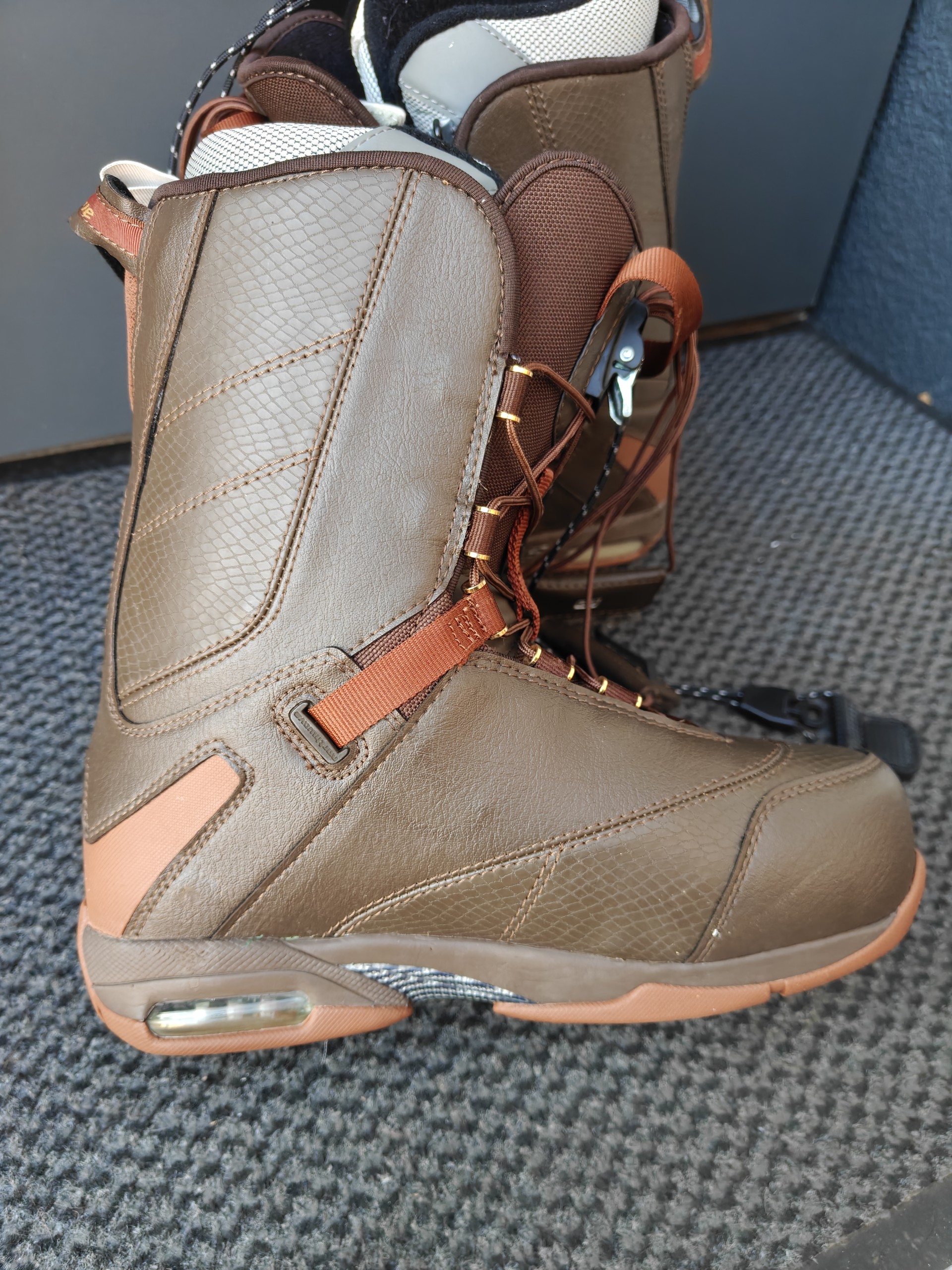 Damskie buty snowboardowe Northwave Devine SL w kolorystyce brązowo-złotej. Model ten jest popularny ze względu na swoją wygodę, funkcjonalność i wsparcie na stoku.