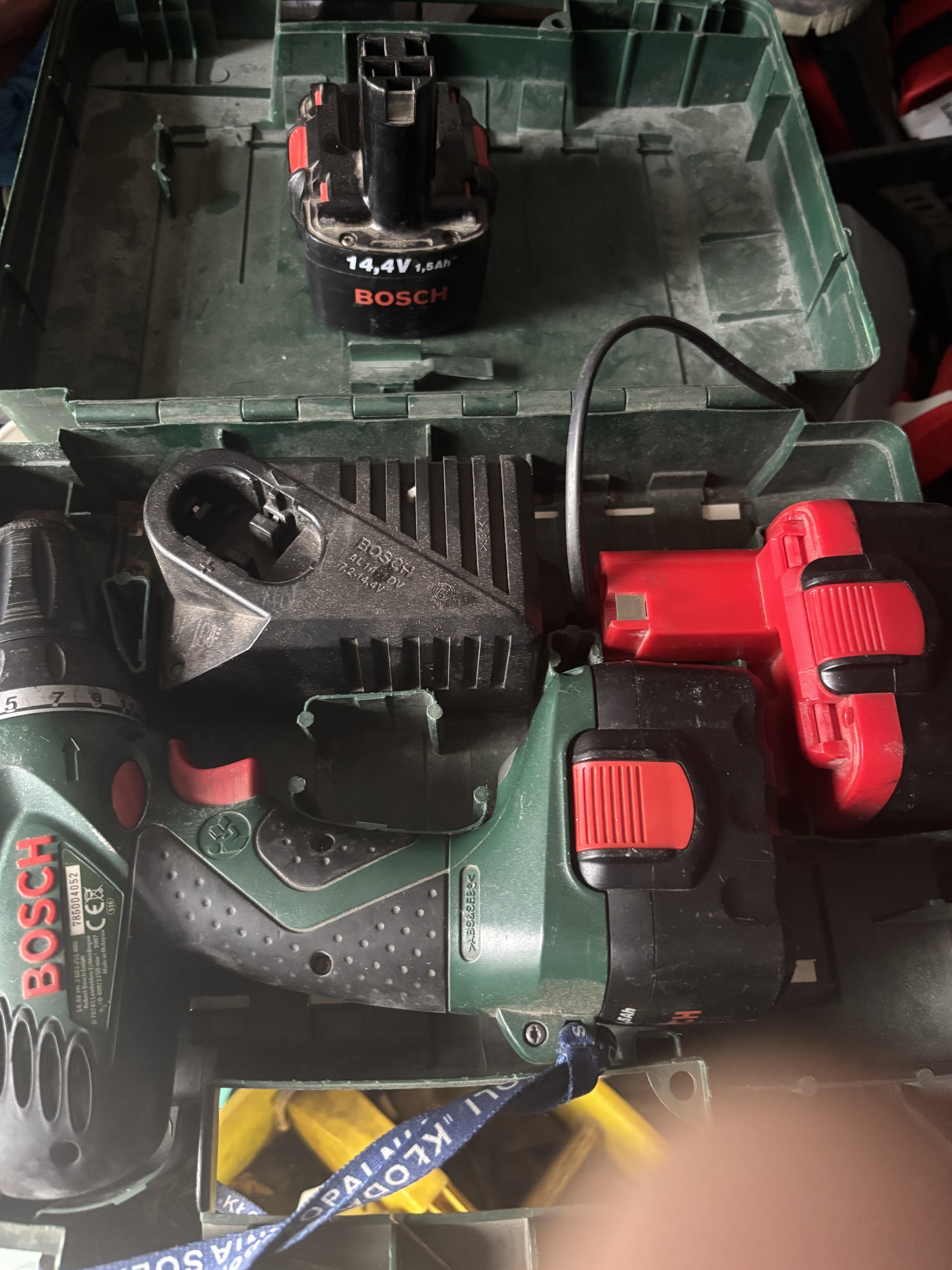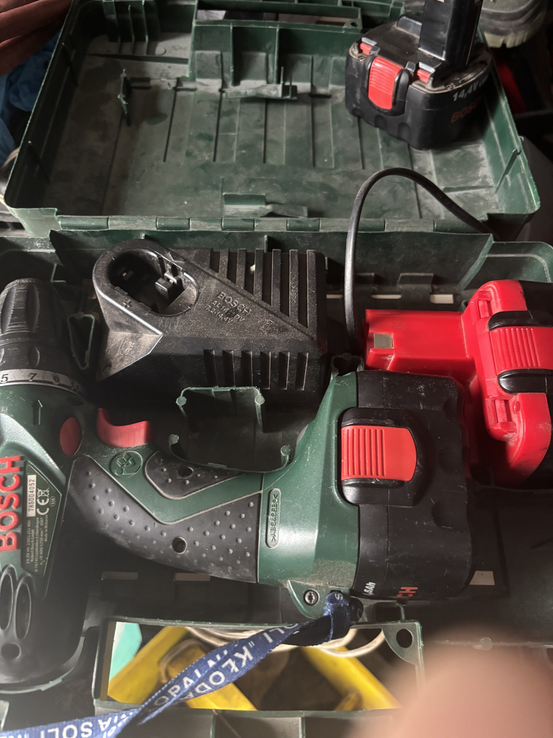 Sprzedam wkrętarkę Bosch 14,4 stan jak na foto, jedna bateria zamiennik dwie z kompletu, walizka