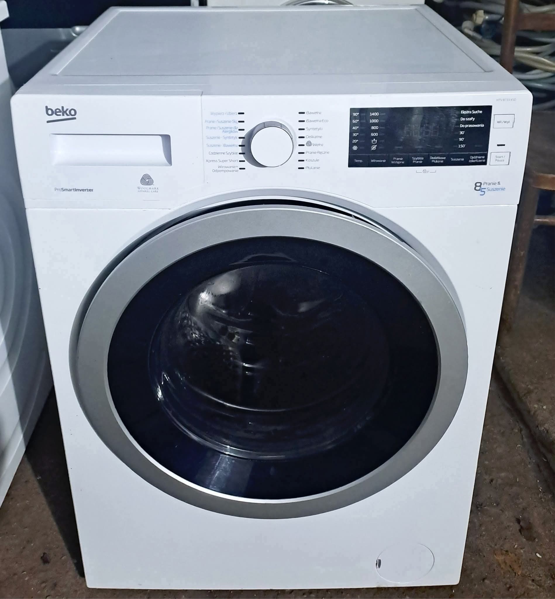 Sprzedam pralko suszarkę firmy Beko. Wsad prania 8kg, a suszenia 5kg. Maksymalna ilość obrotów wirowania 1400/min. Silnik inwenterowy. Programy dla alergików. Szybkie pranie, bawełna, syntetyki, puchowe itd. Opóźniony start. Sprzęt w pełni sprawny. Stan bardzo dobry. Możliwy transport na terenie Turku GRATIS, a poza do uzgodnienia.