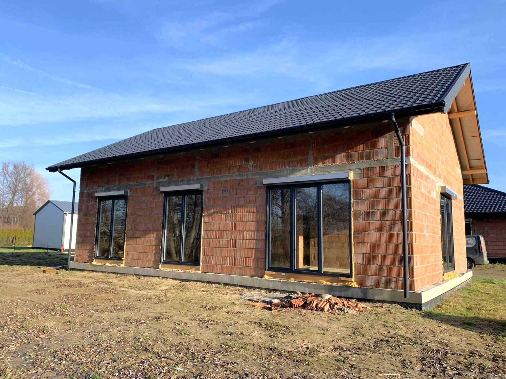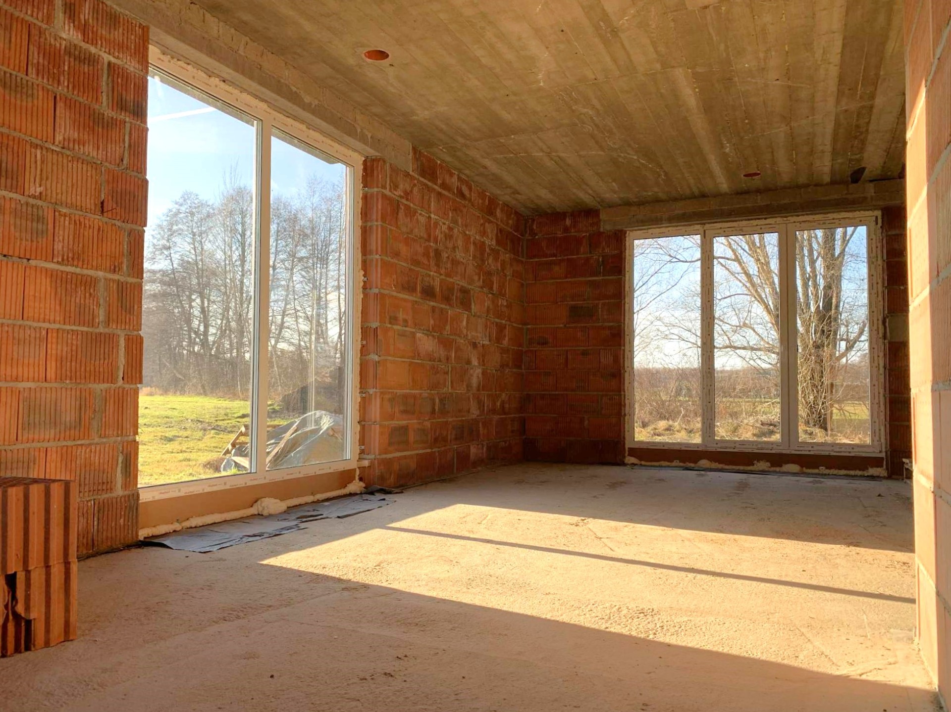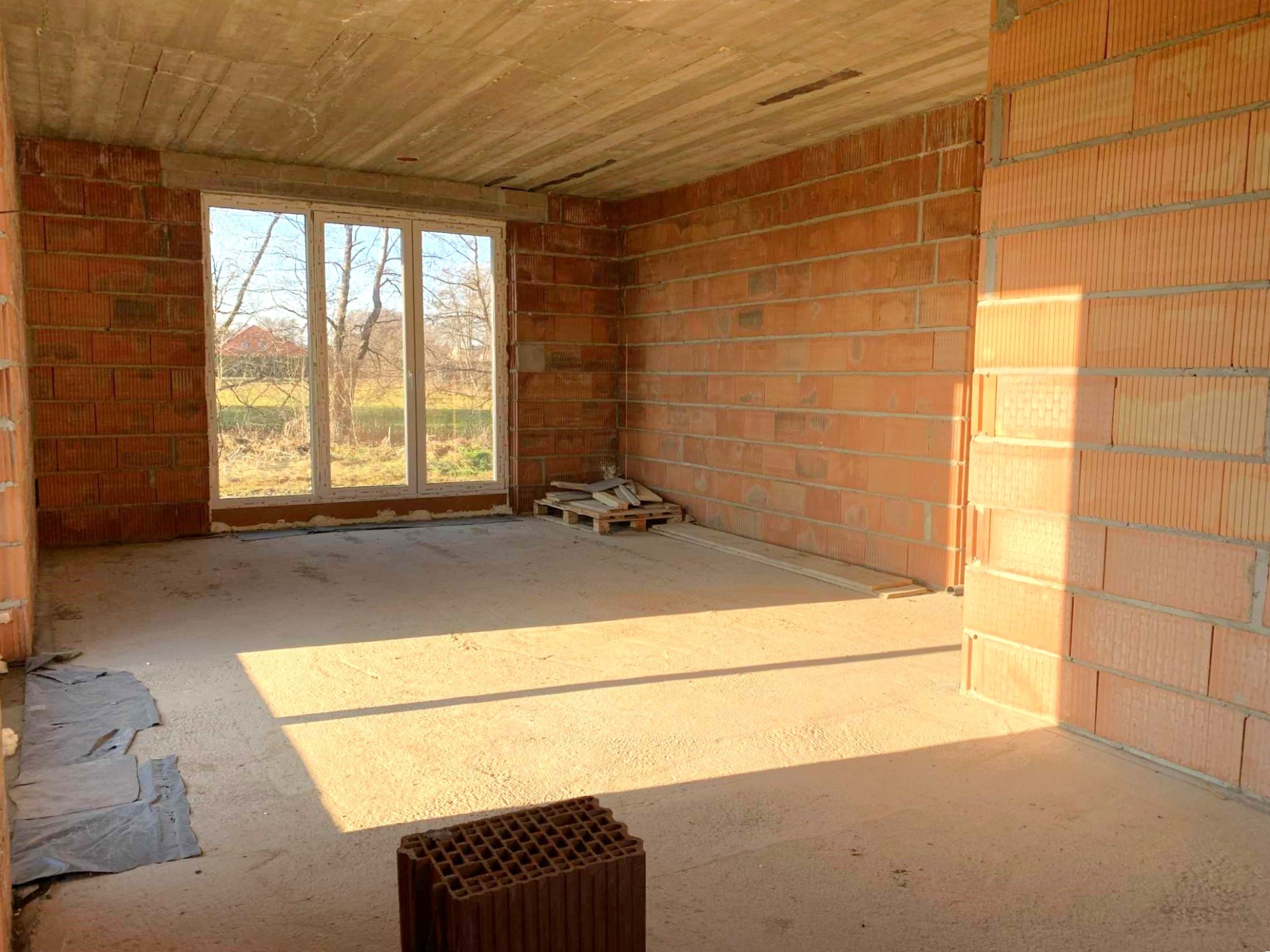 Nieruchomość została wybudowana w technologii tradycyjnej (cegła) i oferuje znakomite podstawy do dalszego wykończenia: