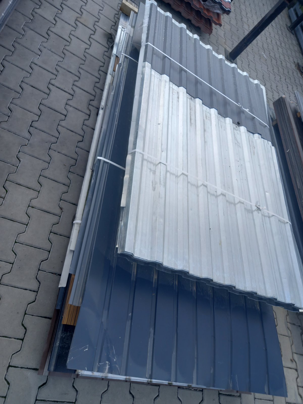 Ma drobne rysy lub przetarcia, ale idealnie nadaje się na dachy garaży, wiat, szop czy ogrodzeń.