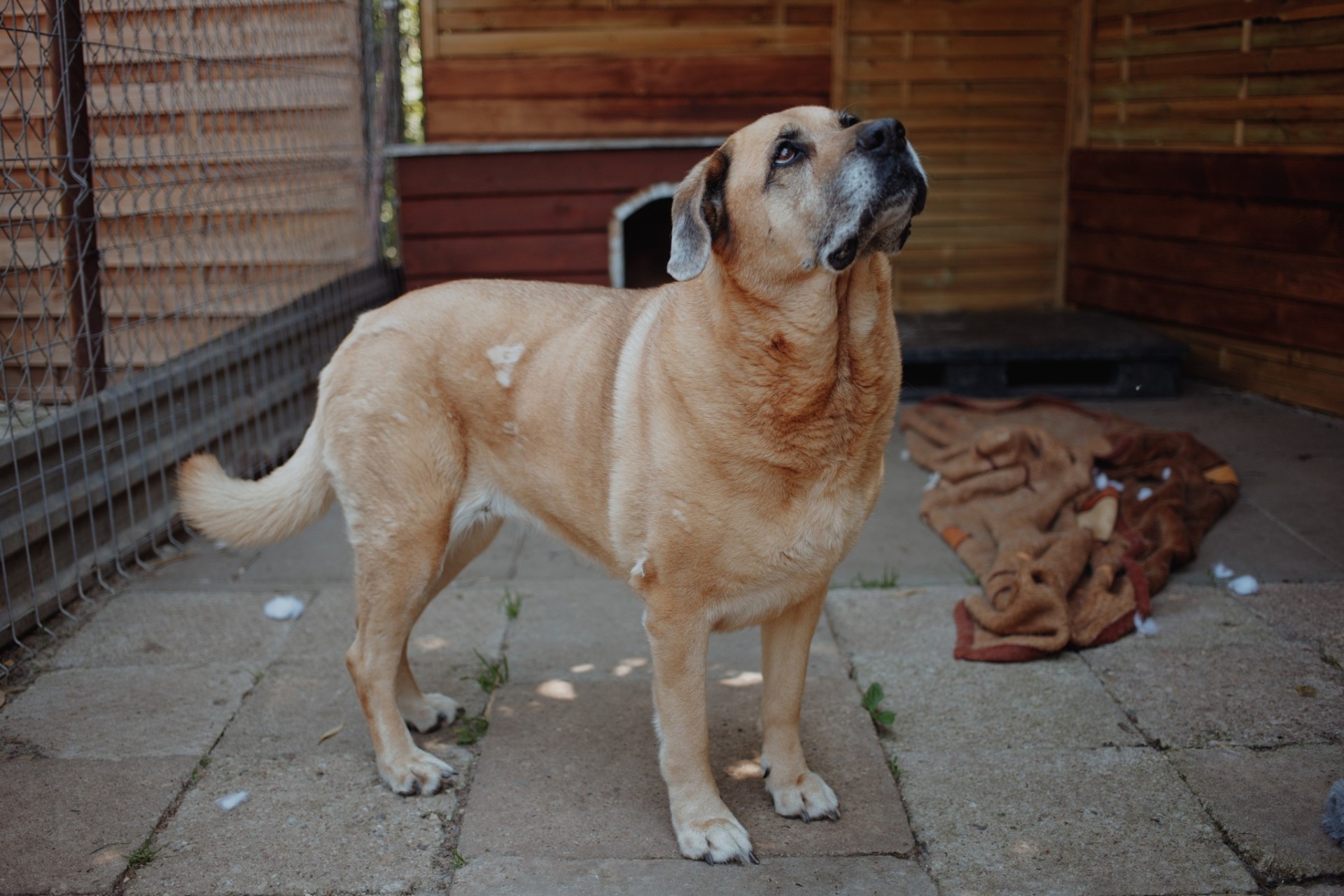 Jest około 10-letnią suczką, która wykazuje się względem ludzi zaufaniem, spokojem i łagodnością. Jest wykastrowana i żyje w zgodzie z innymi psami.
